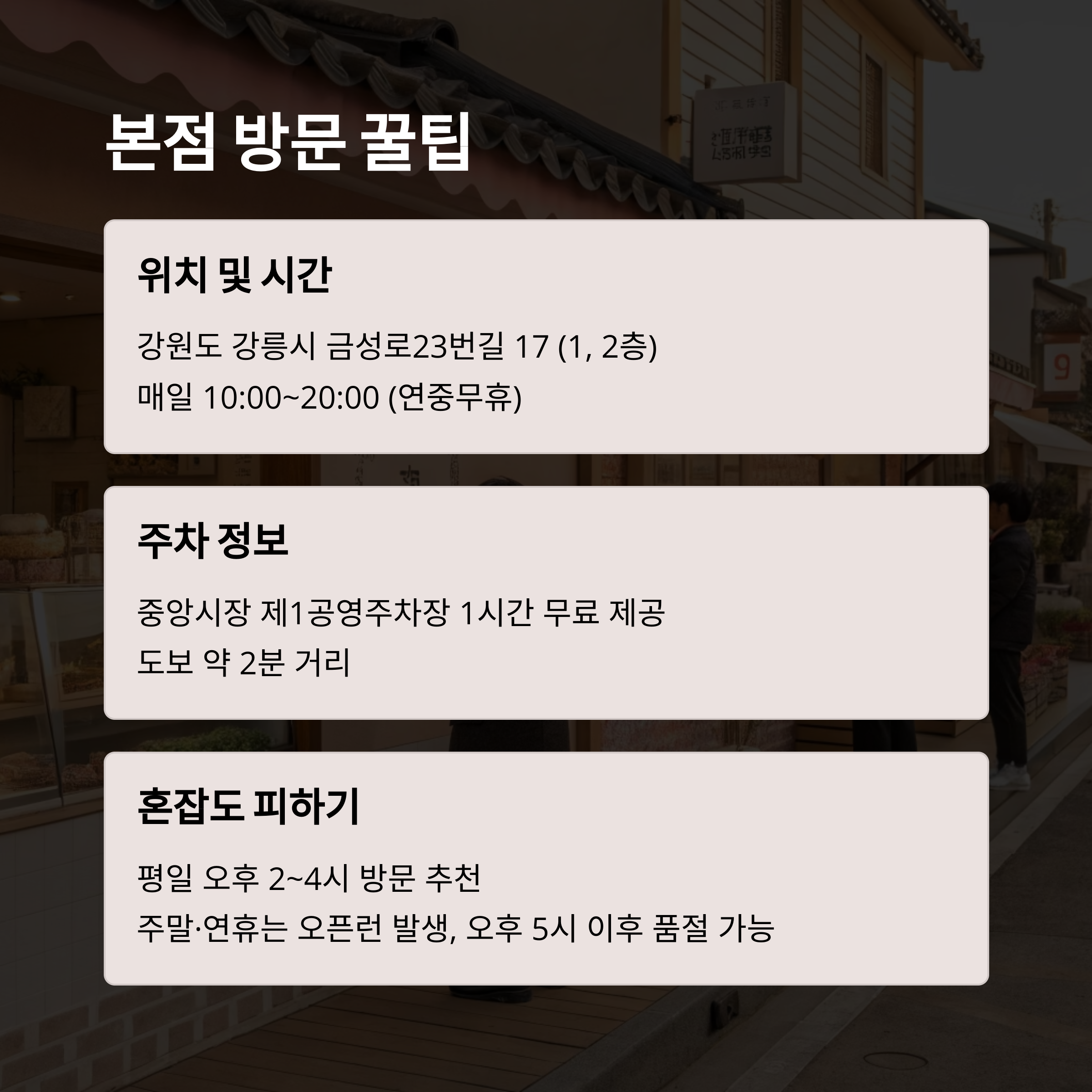 강릉을 찾는다면 강릉샌드 본점을 들러 직접 맛보고 취향을 찾아보는 경험을 추천합니다.