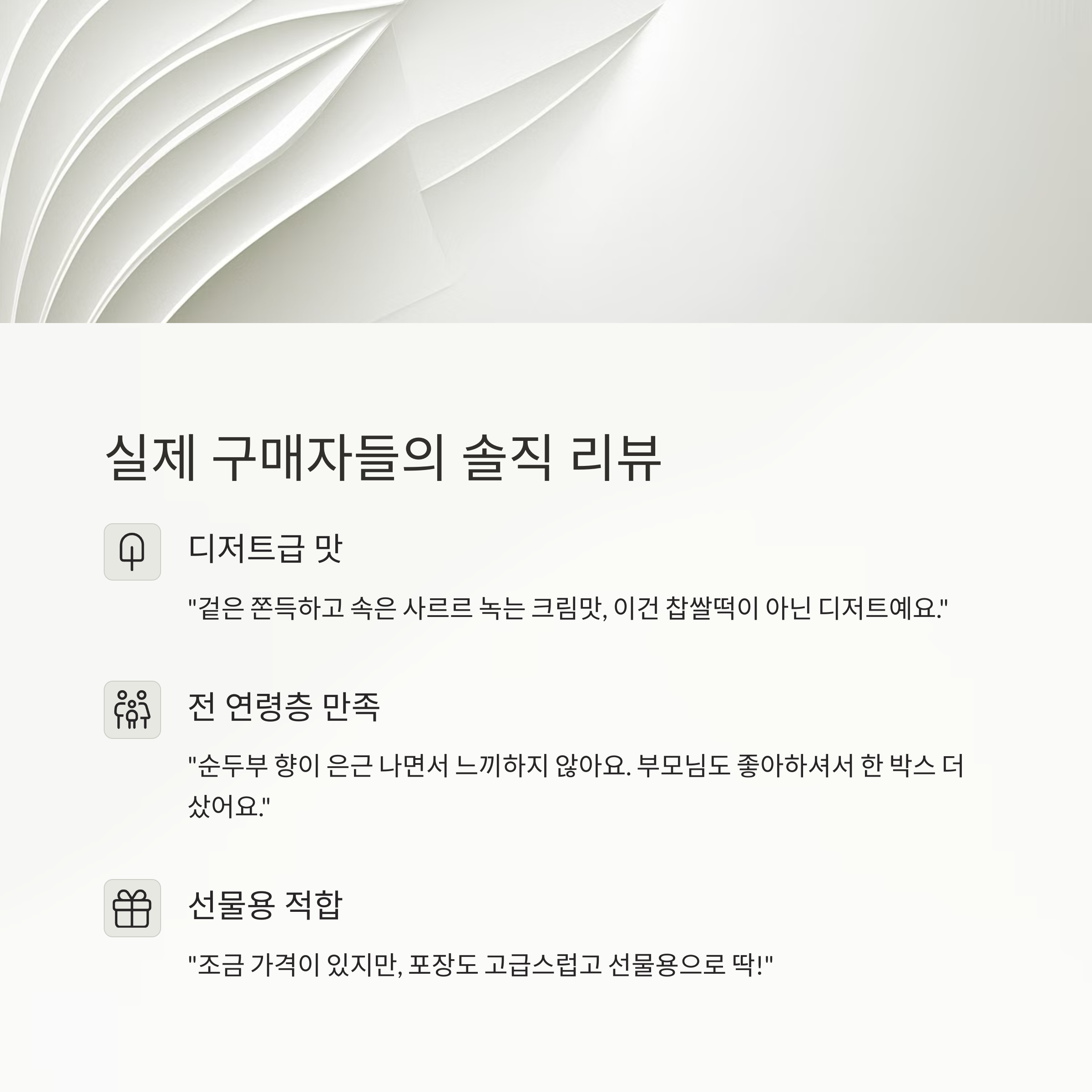 "겉은 쫀득하고 속은 사르르 녹는 크림맛, 이건 찹쌀떡이 아닌 디저트예요."