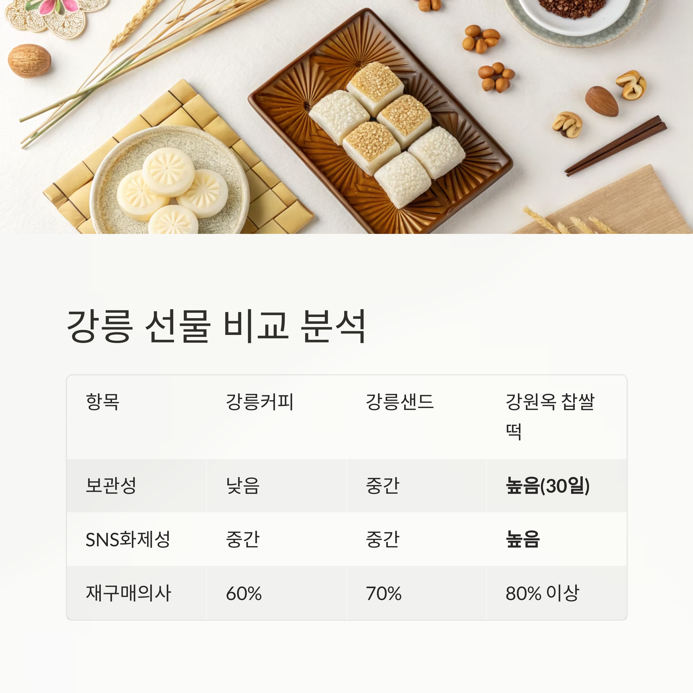 항목 강릉커피 강릉샌드 강릉맥주 강원옥 찹쌀떡