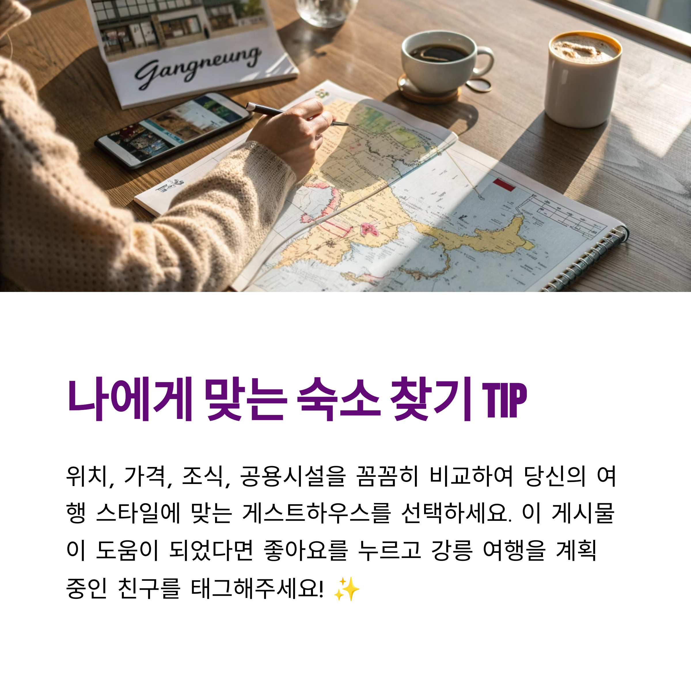여행 목적예산에 맞춰 숙소를 선택하면 더 행복한 강릉 여행을 즐길 수 있을 것입니다.