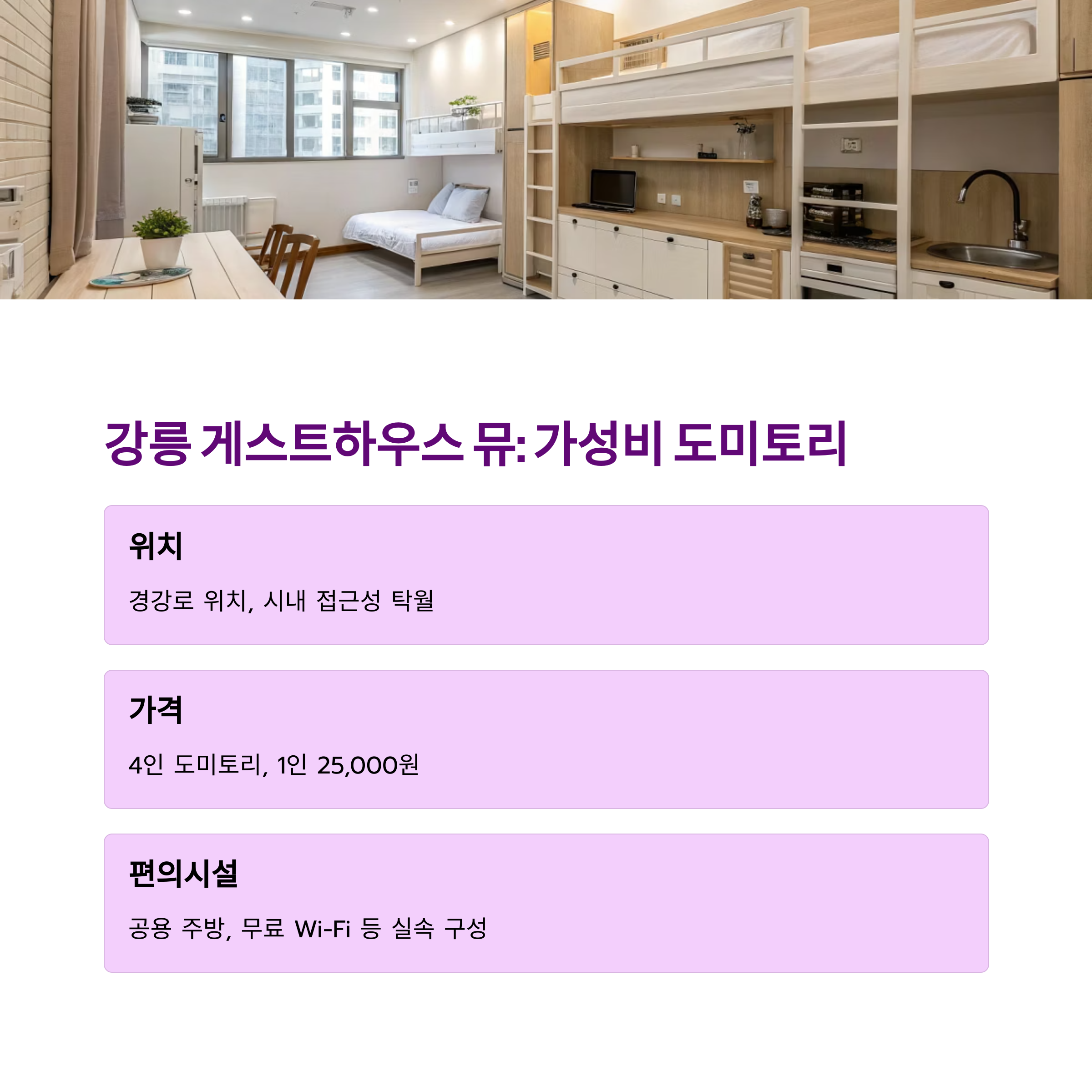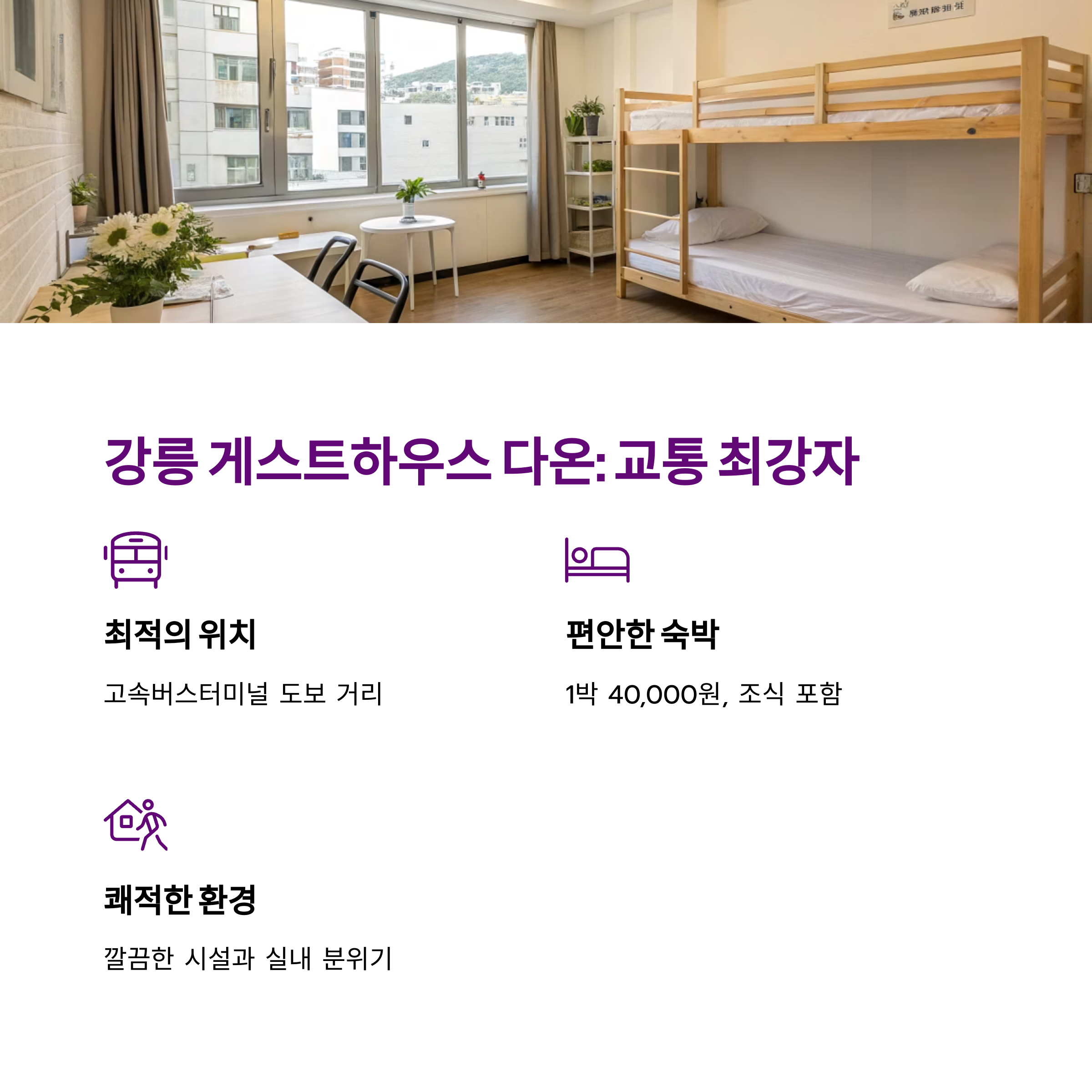 강릉의 다양한 문화와 자연을 즐기며 가성비 좋은 숙소를 찾는 분에게 적합한 내용을 준비했습니다.