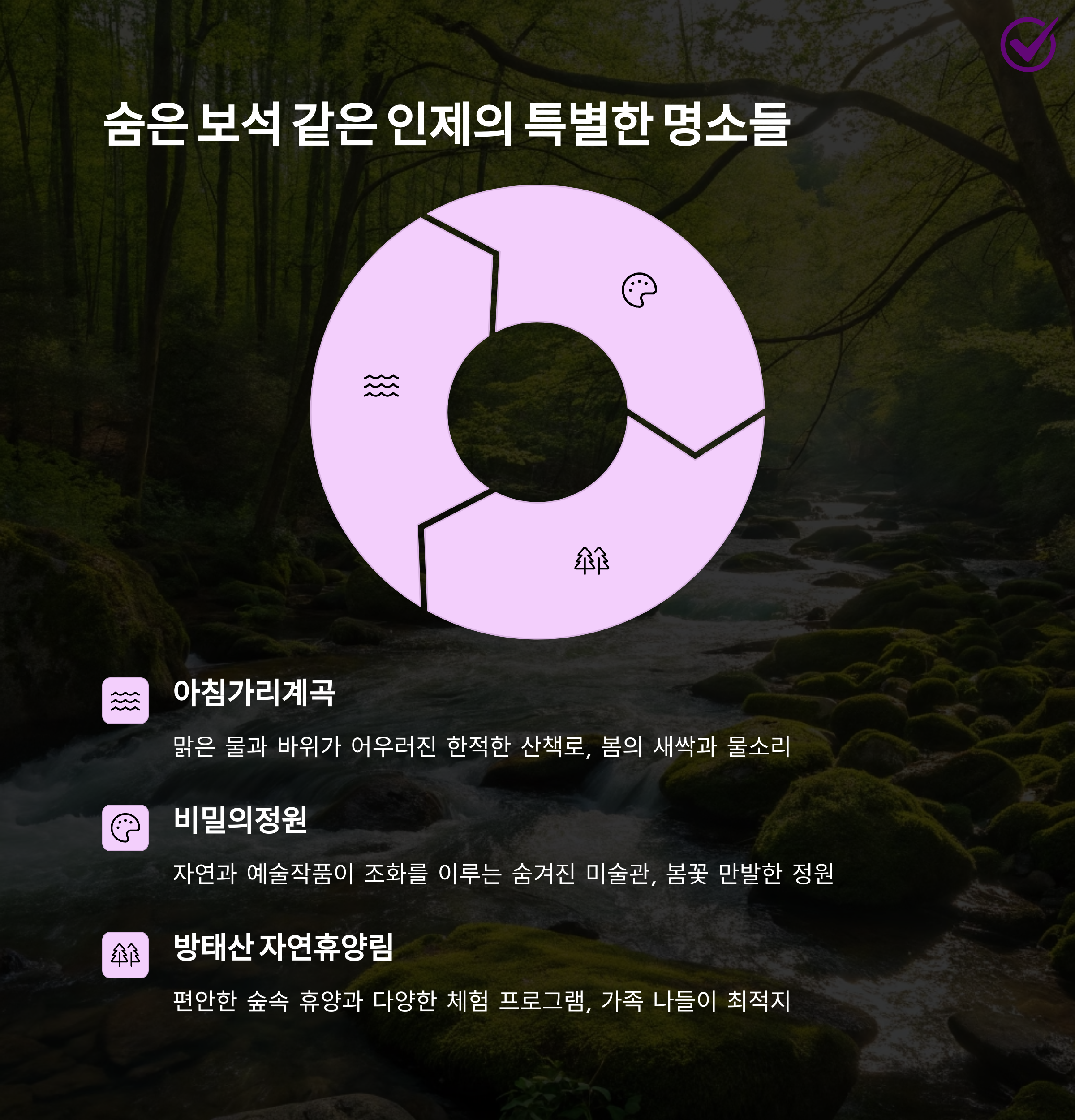 지금부터 인제의 매력적인 8가지 봄 여행 코스를 소개하겠습니다!