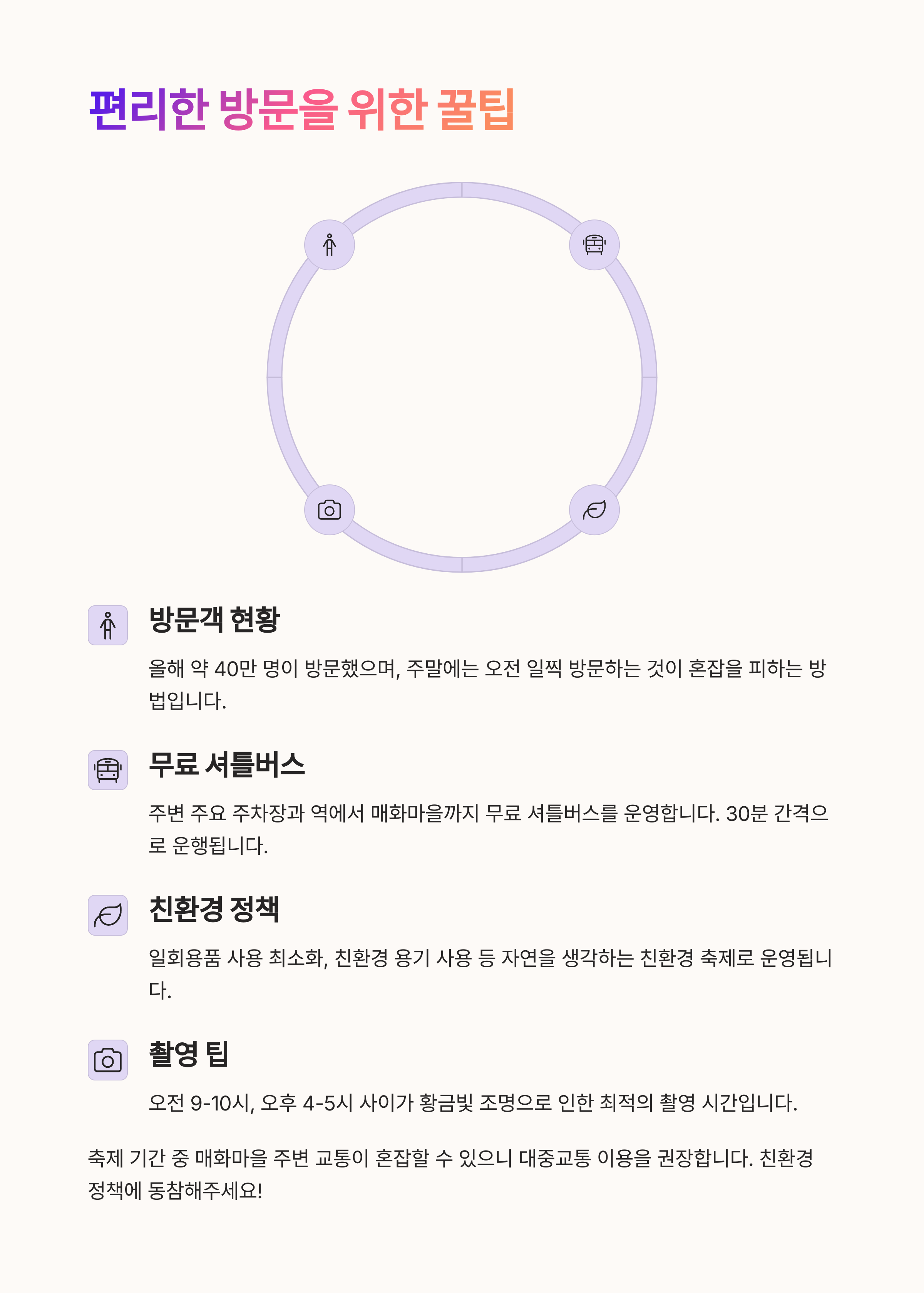 | 축제 기간 | 실시간 정보 | 사진 스팟 |