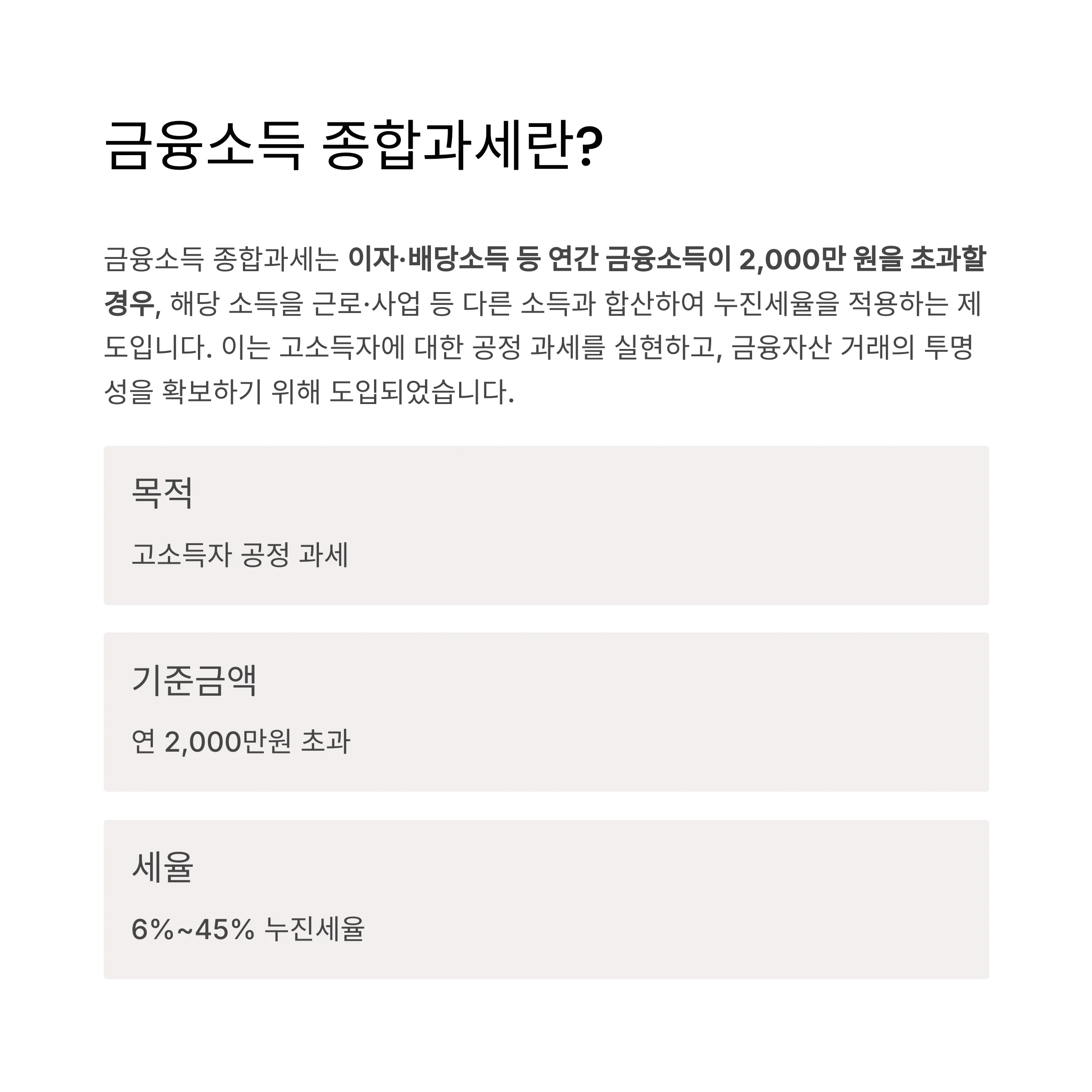 금융소득 종합과세는 이자·배당소득 등 연간 금융소득이 2,000만 원을 초과할 경우,