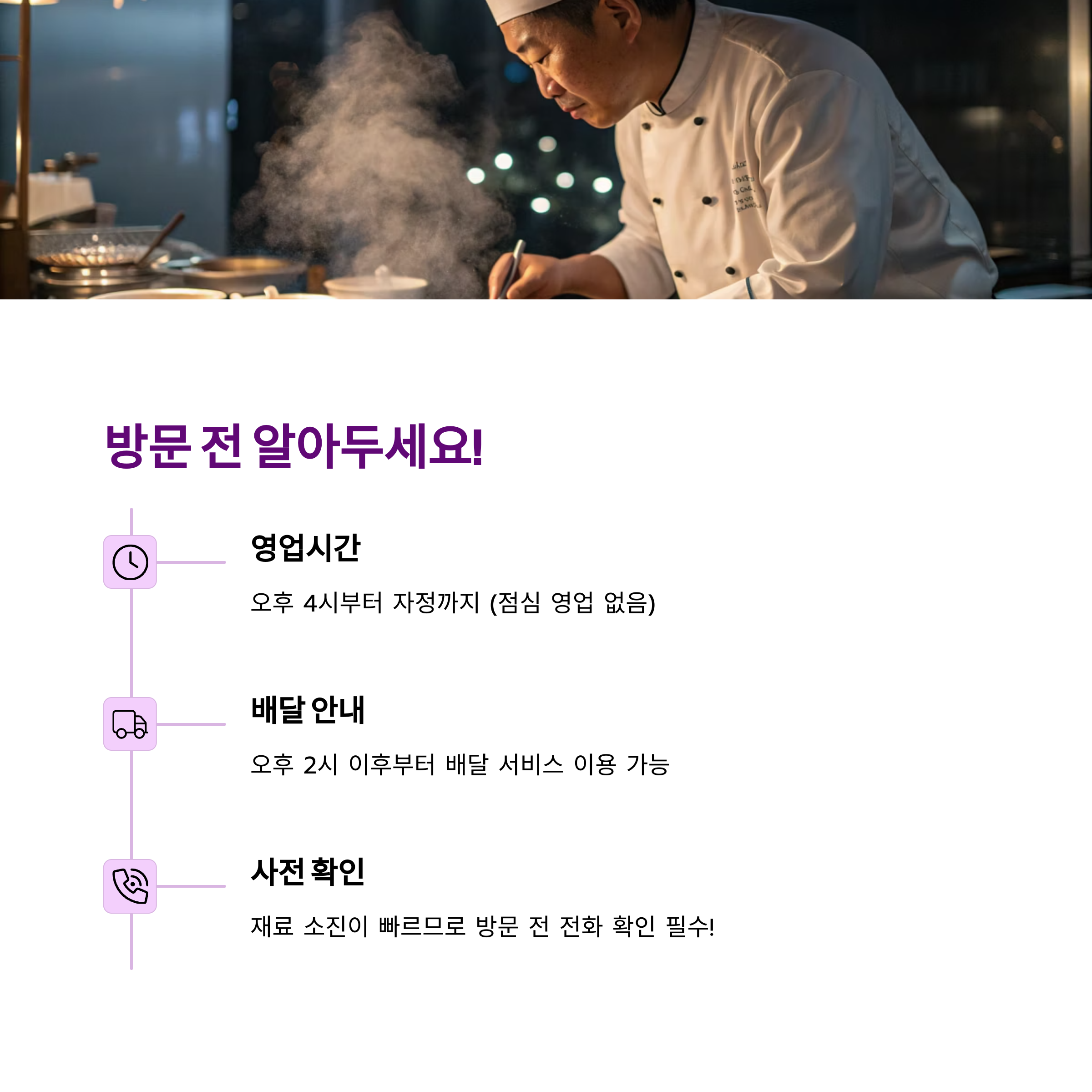 | 추천 시간대 | 저녁 시간 | 재료 소진 시간 | 문의 필수 |