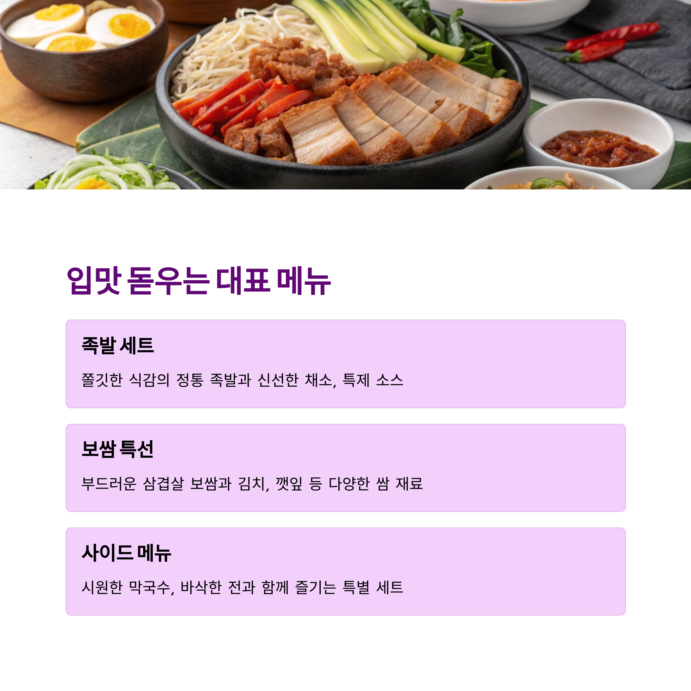 | 주요 메뉴 | 족발, 보쌈 (가격 미제공) |