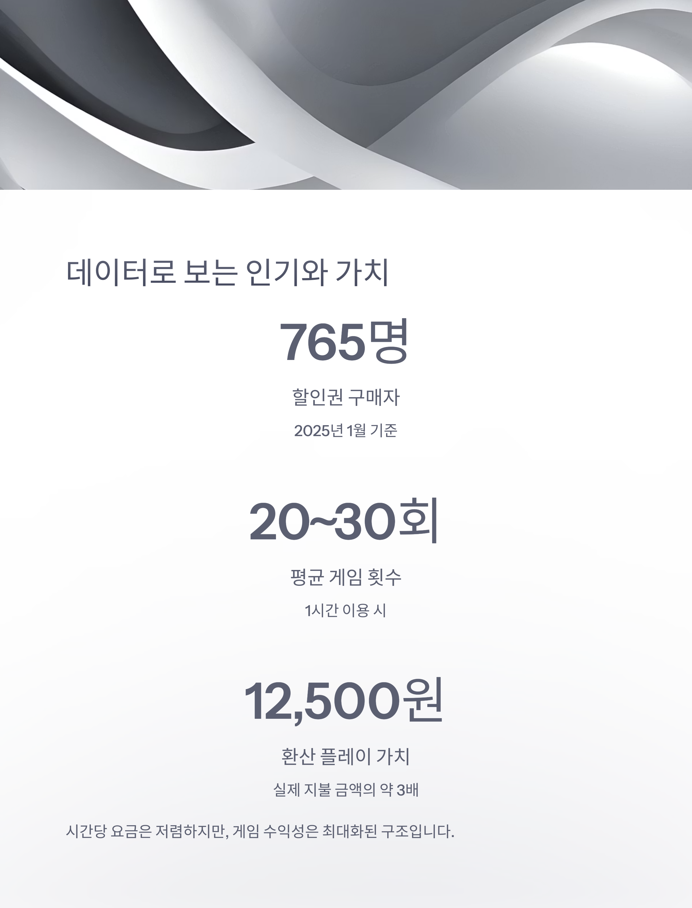 핵심: 시간당 요금은 저렴하지만, 게임 수익성은 최대화되어 있는 구조입니다.