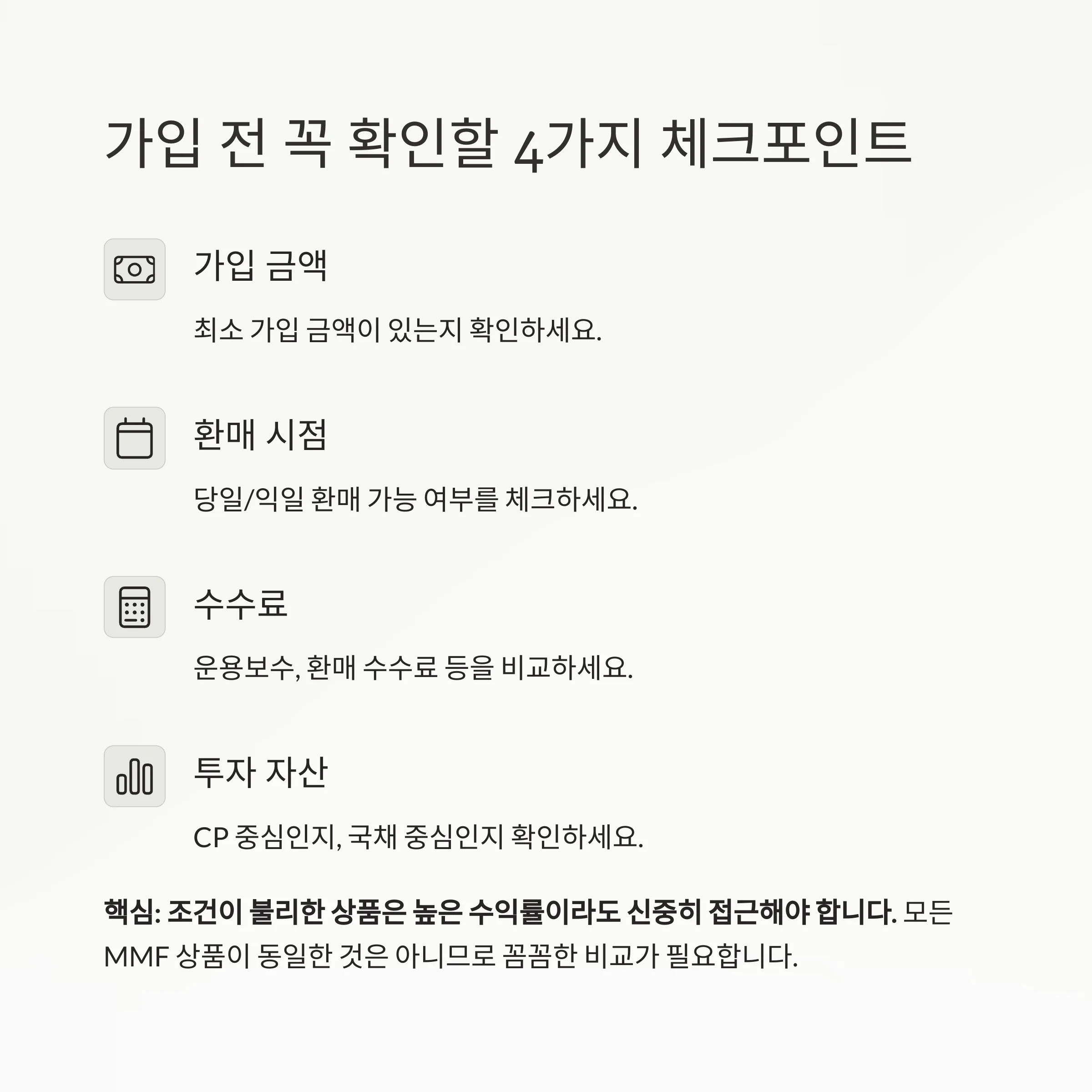 중요: MMF는 예금자 보호가 되지 않으므로, 안정성 평가와 분산 투자 필수입니다.