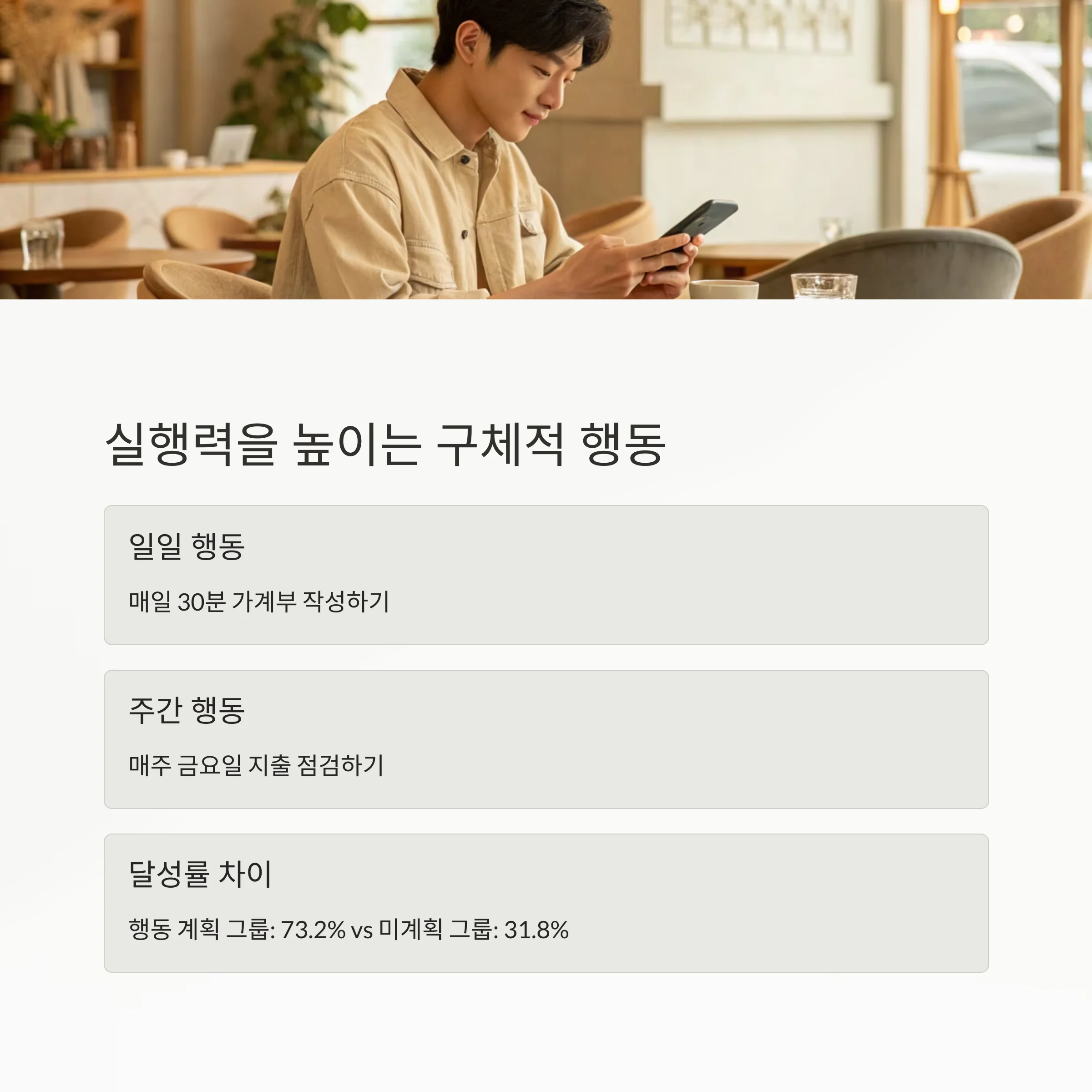 "매일 30분 가계부 작성", "매주 금요일 지출 점검"과 같은 행동 지침이 반드시 필요합니다.