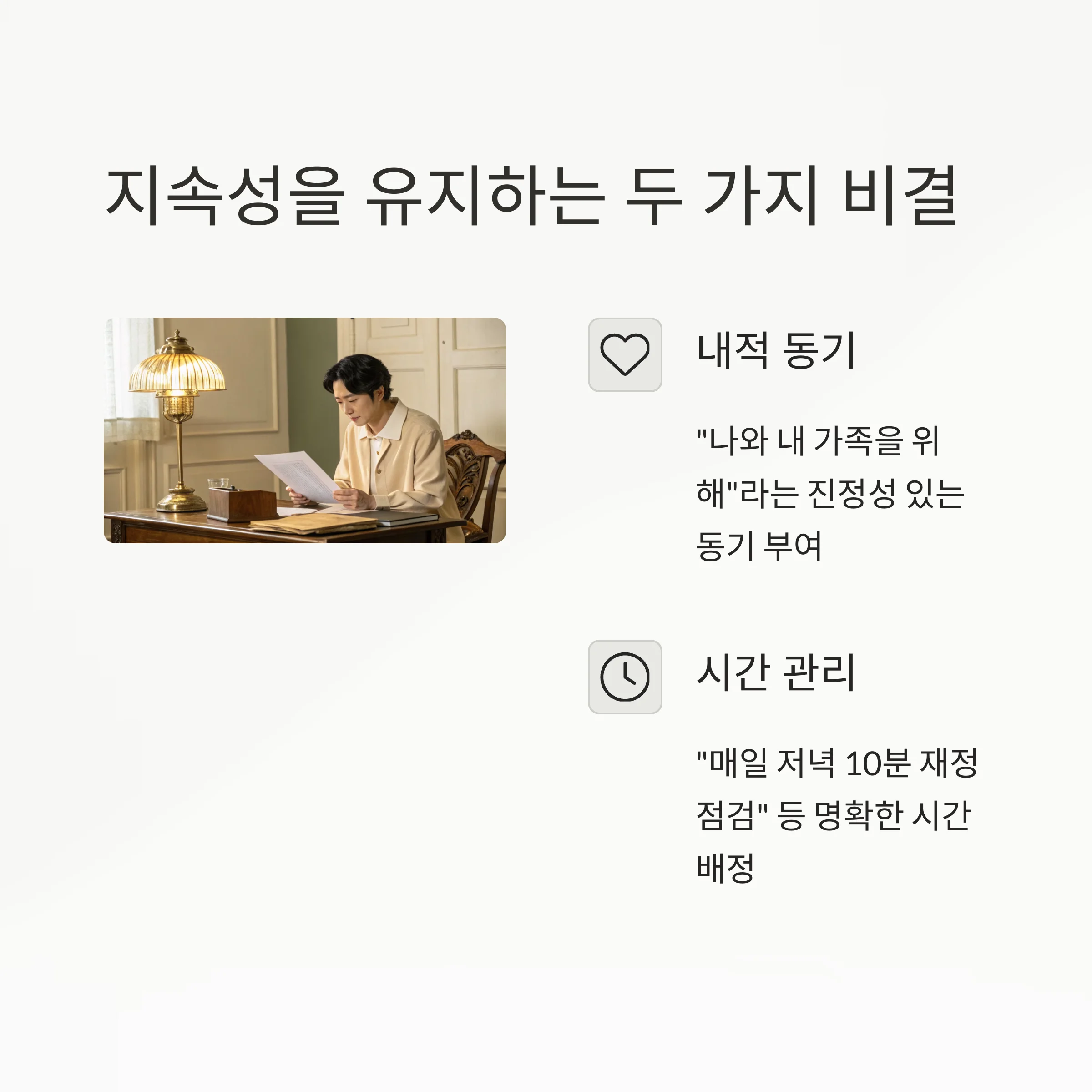 "남들이 하니까"가 아니라 "나와 내 가족을 위해"라는 진정성 있는 동기 부여가 중요합니다.
