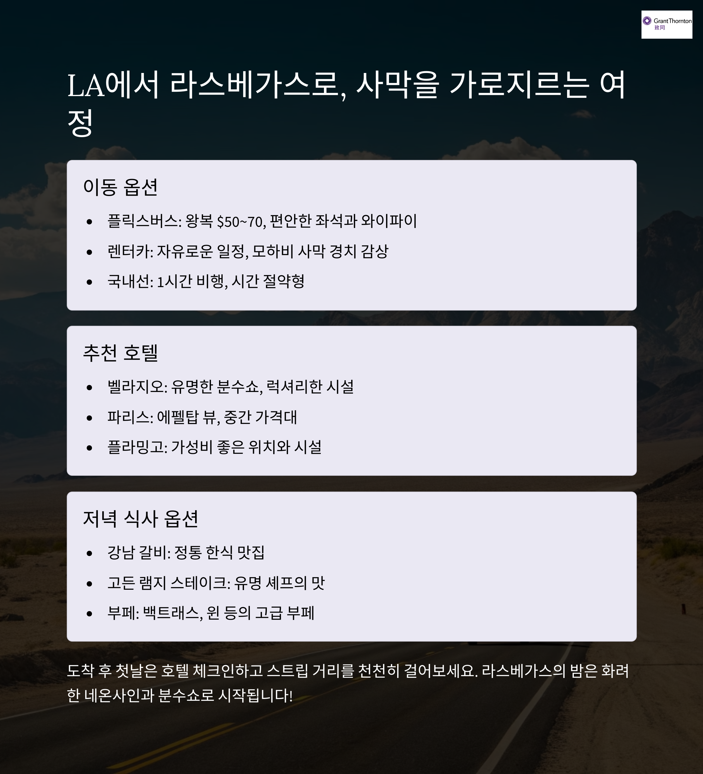 이번에 소개할 주제는 미국 서부의 중심지인 LA와 라스베가스입니다.