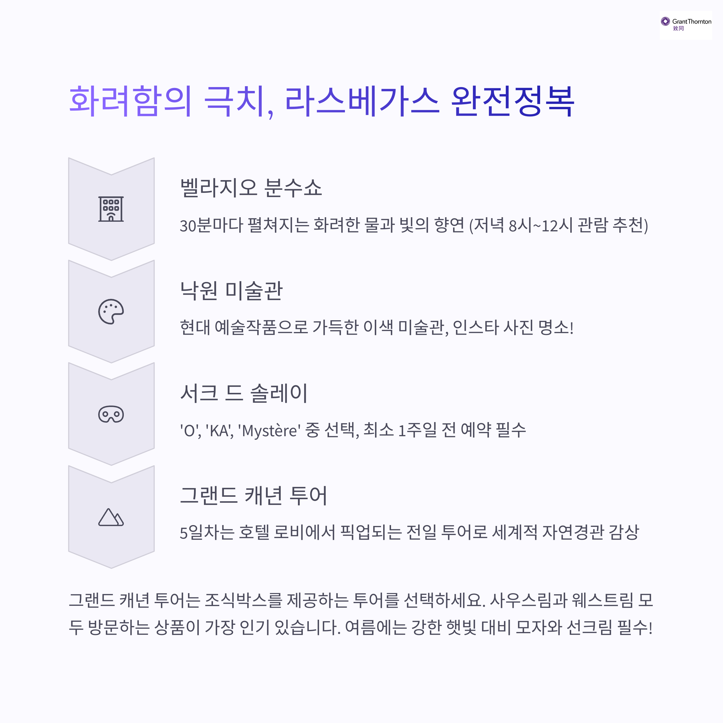 라스베가스에서는 화려한 호텔과 엔터테인먼트, 그리고 가까운 국립공원을 경험할 수 있습니다.