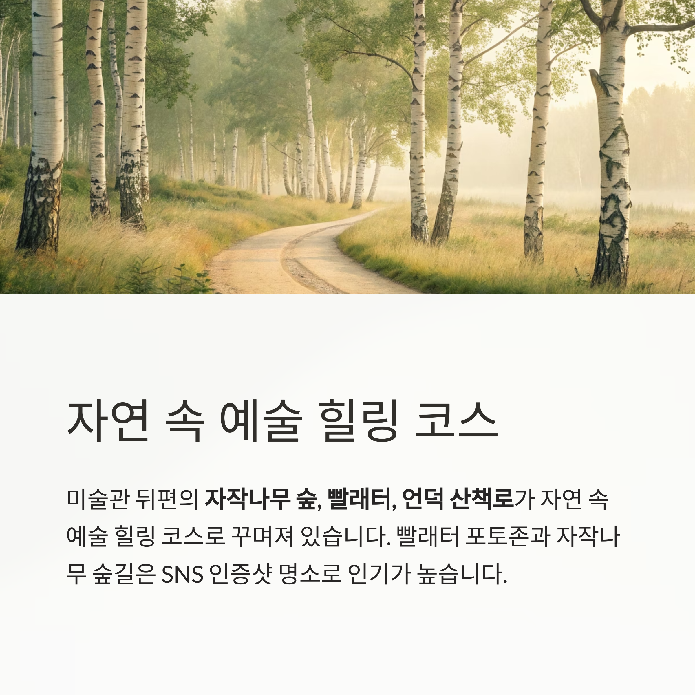 전시 관람 후에는 미술관 뒤편의 자작나무 숲, 빨래터, 언덕 산책로가