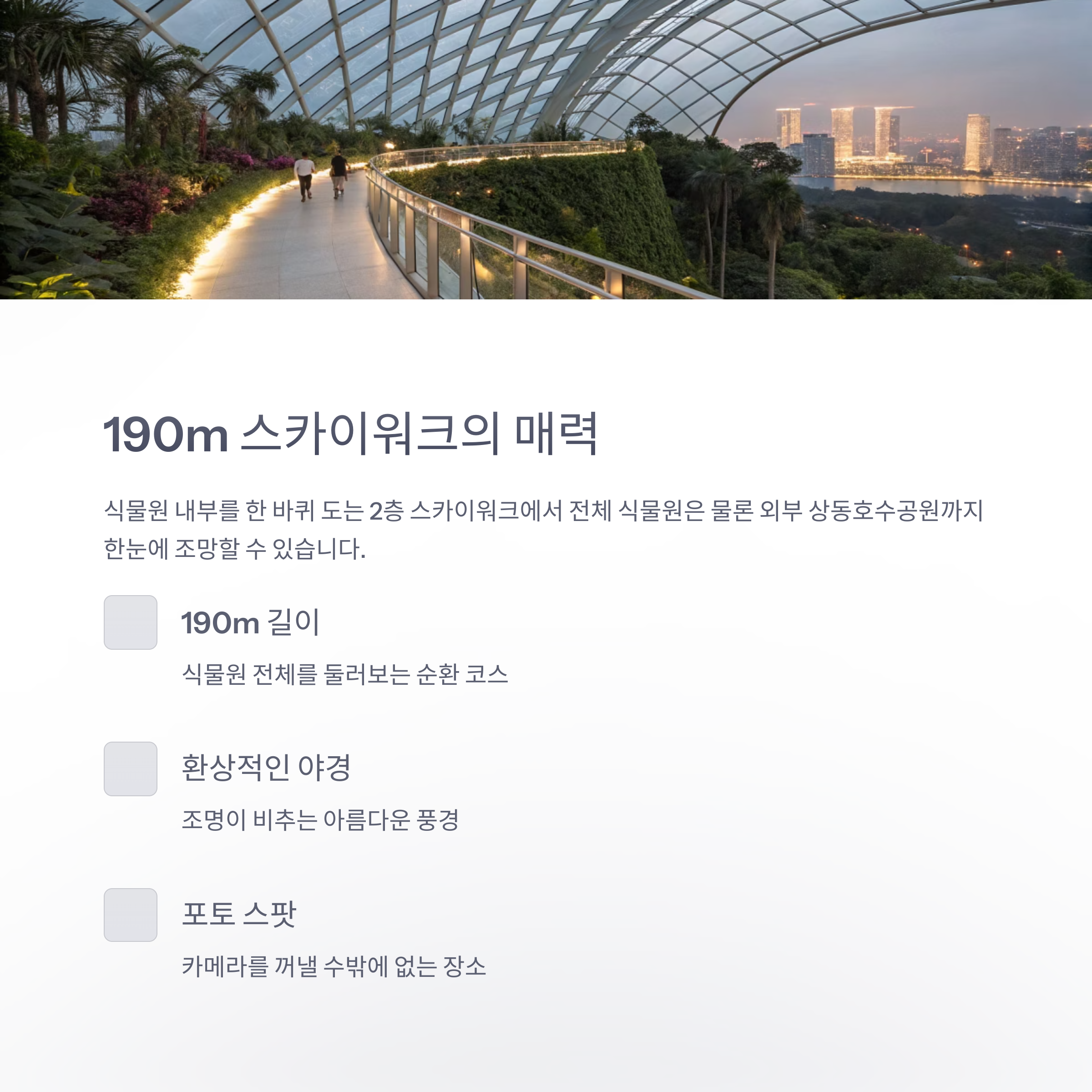식물원 내부를 한 바퀴 도는 2층 스카이워크는 총 190m 길이로