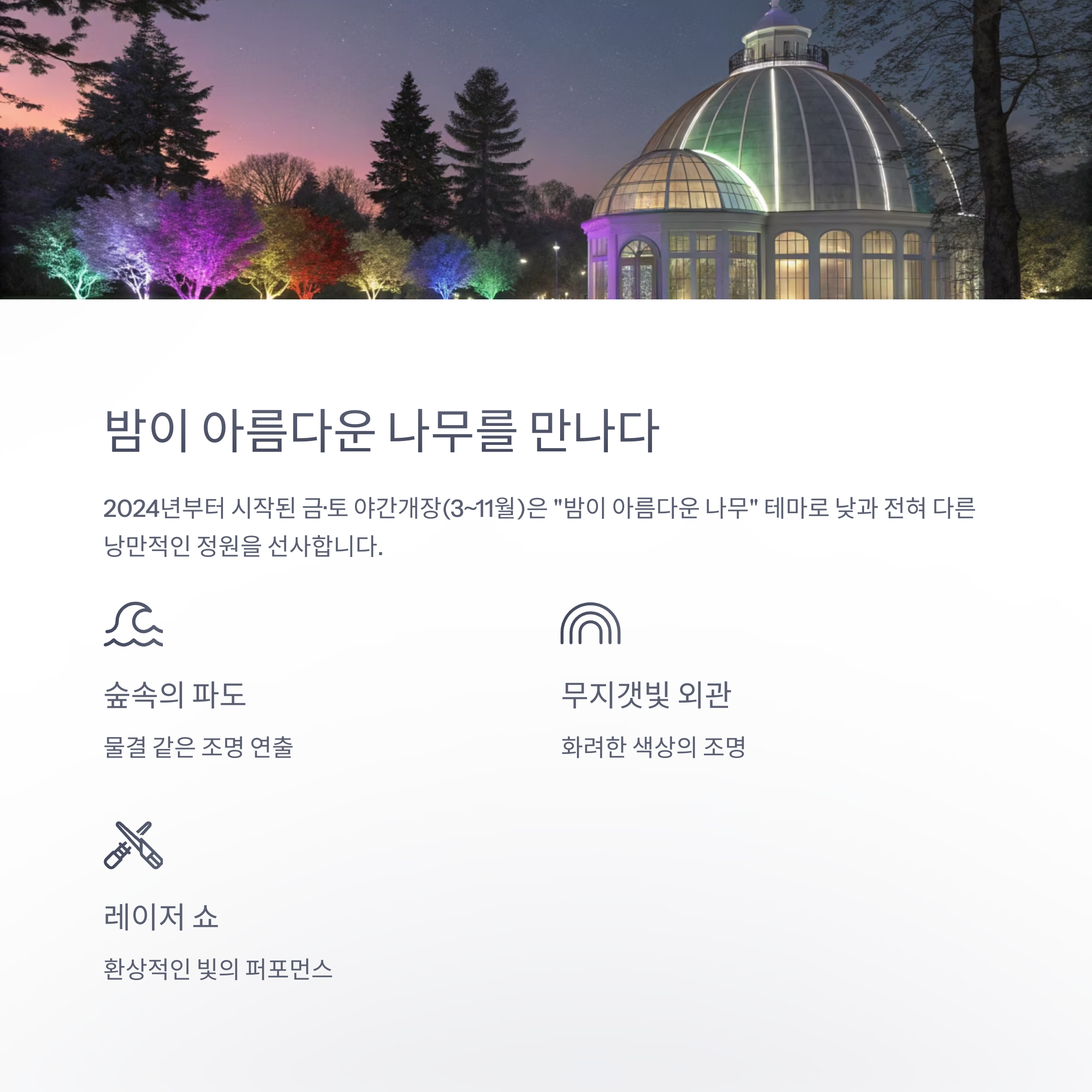 야간개장, ‘밤이 아름다운 나무’를 만나다