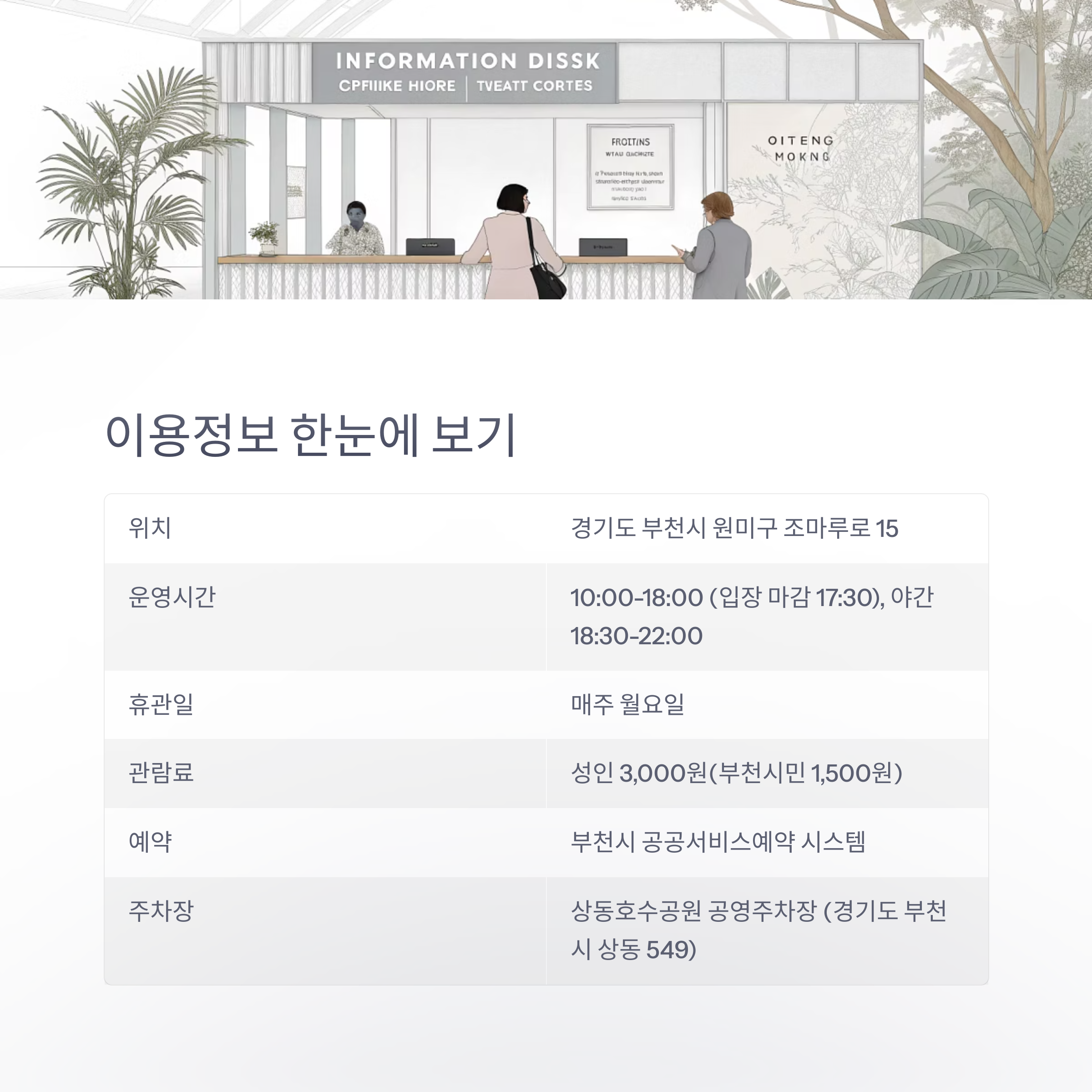 | 관람료 | 성인 3,000원(부천시민 1,500원) |