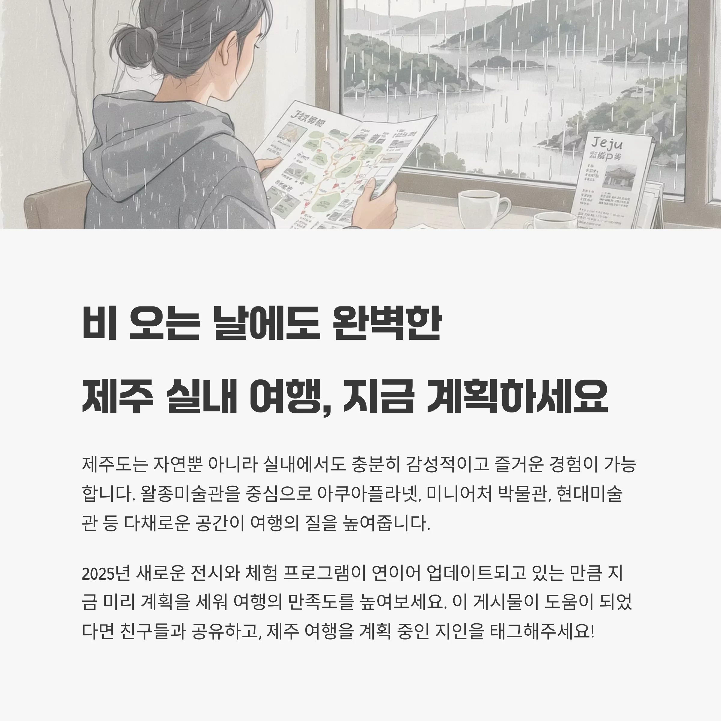 비 오는 날에도 완벽한 제주 실내 여행, 지금 계획하세요