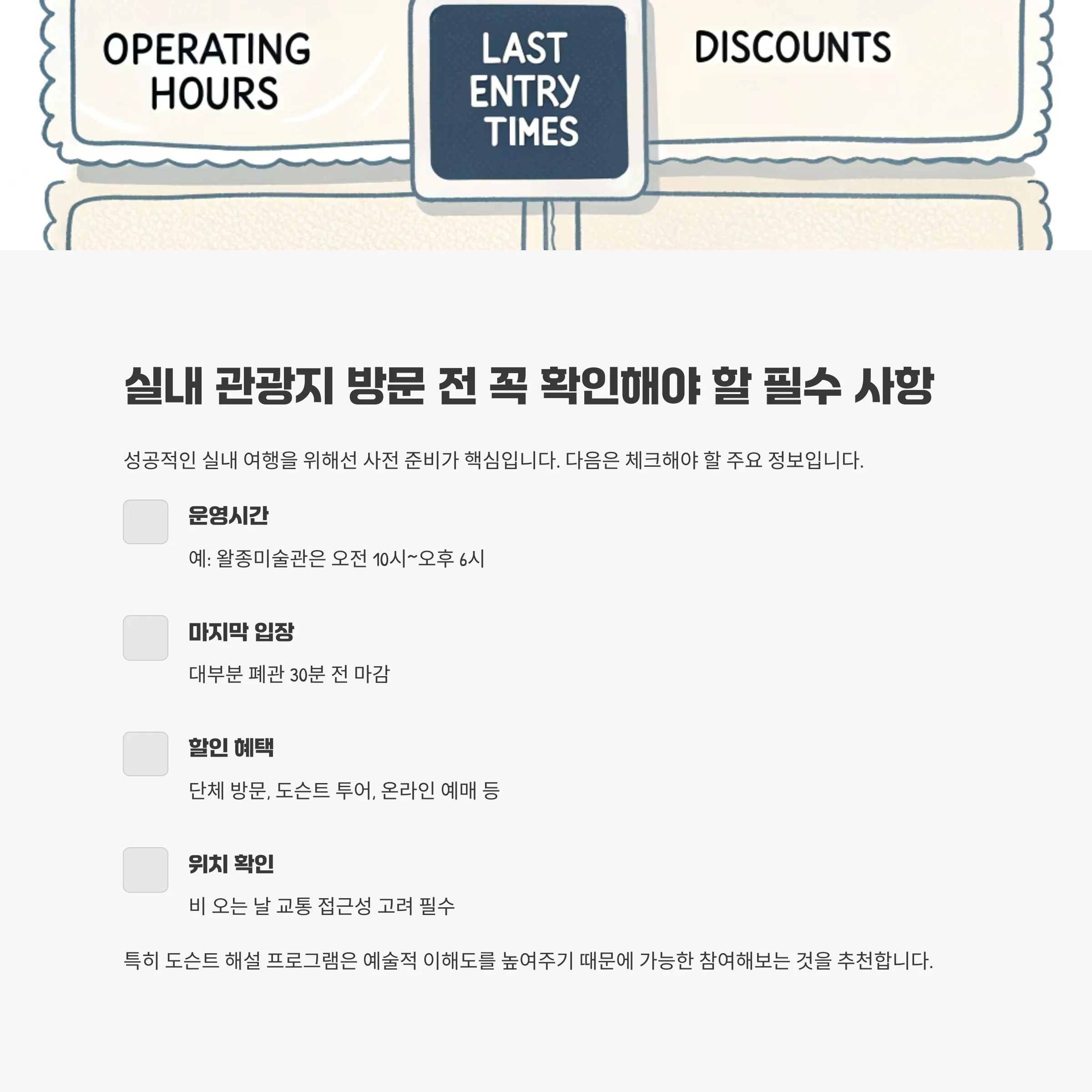 실내 관광지 방문 전 꼭 확인해야 할 필수 사항
