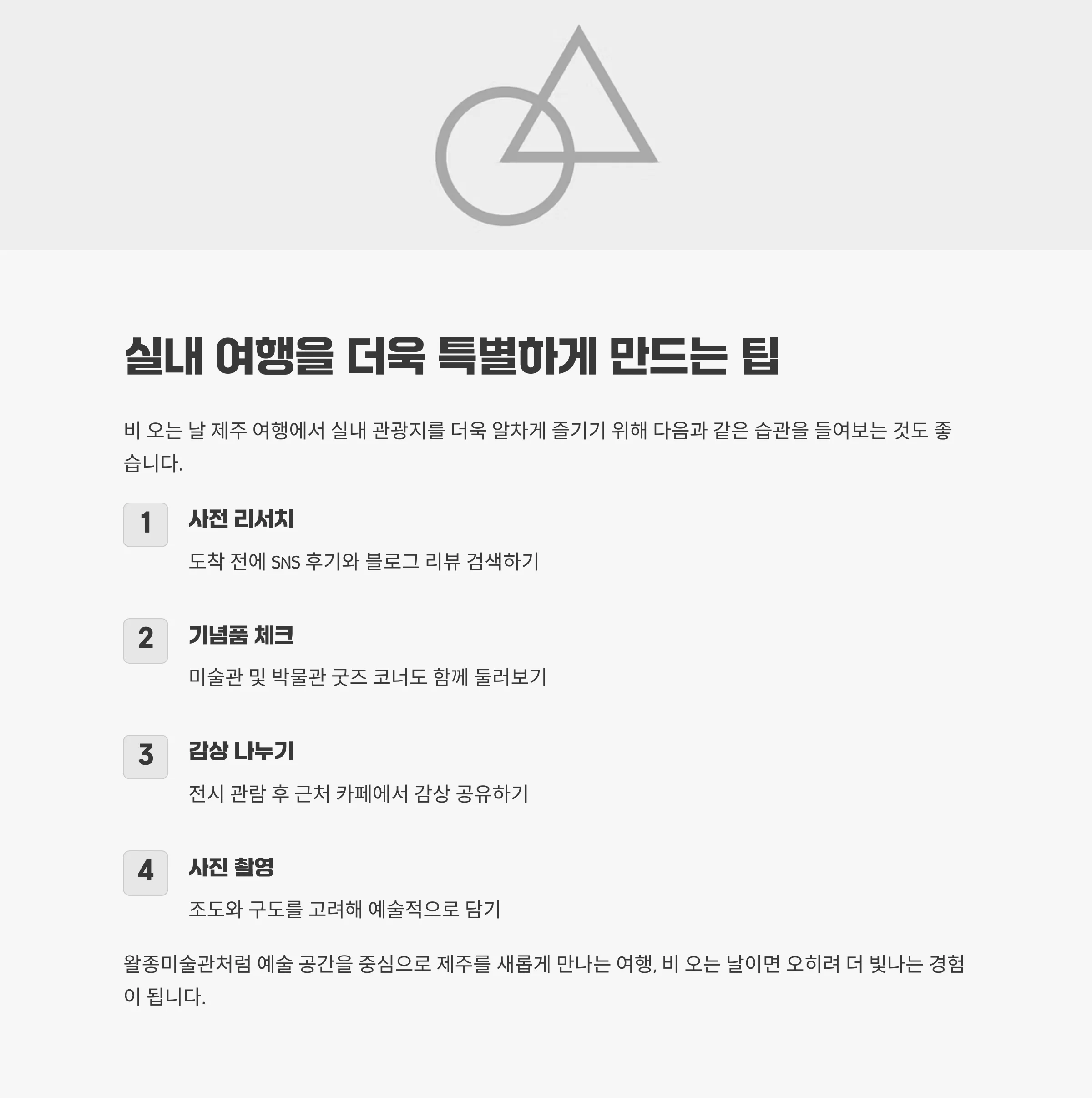 비 오는 날 제주 여행에서 실내 관광지를 더욱 알차게 즐기기 위해
