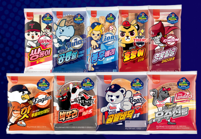 KBO빵 특징 각 구단별 독특한 디자인과 랜덤 띠부씰 포함