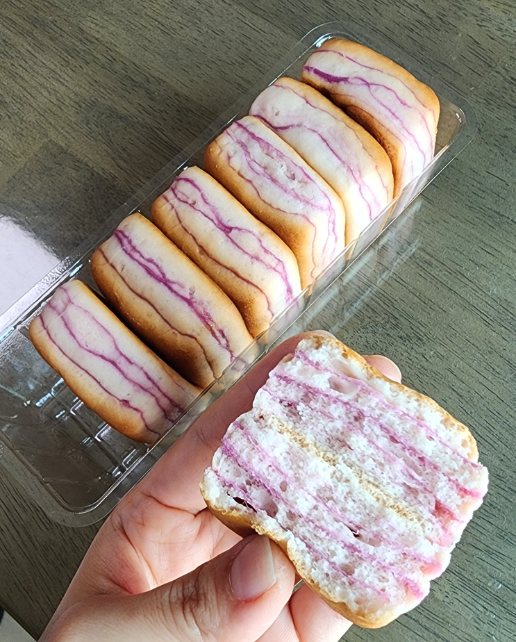 그 빵에 치즈향 부분을 자색고구마 향으로 바꾼 느낌입니다..