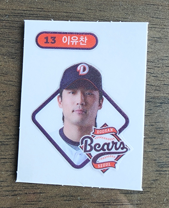 띠부씰은 엘지의 영원한 한지붕 라이벌 두산의 이유찬 선수가 나왔습니다.