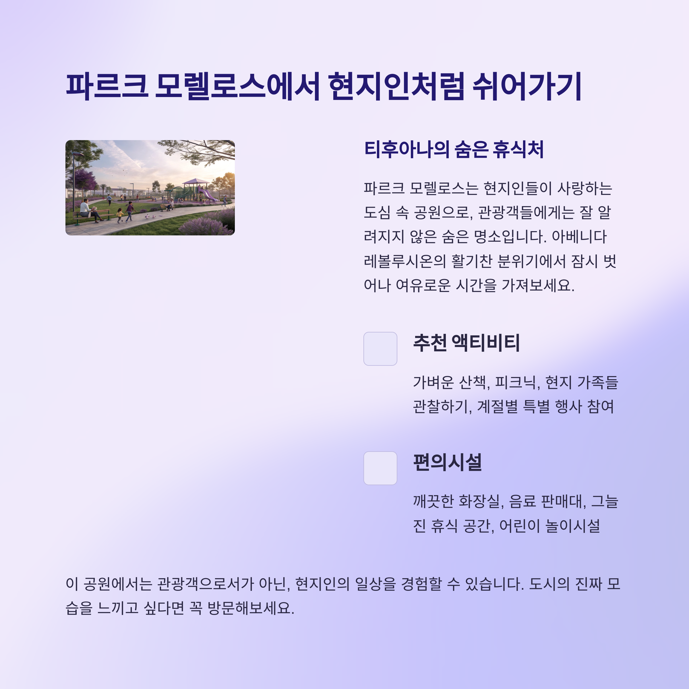 파르크 모렐로스 산책 및 가족 활동 약 1시간