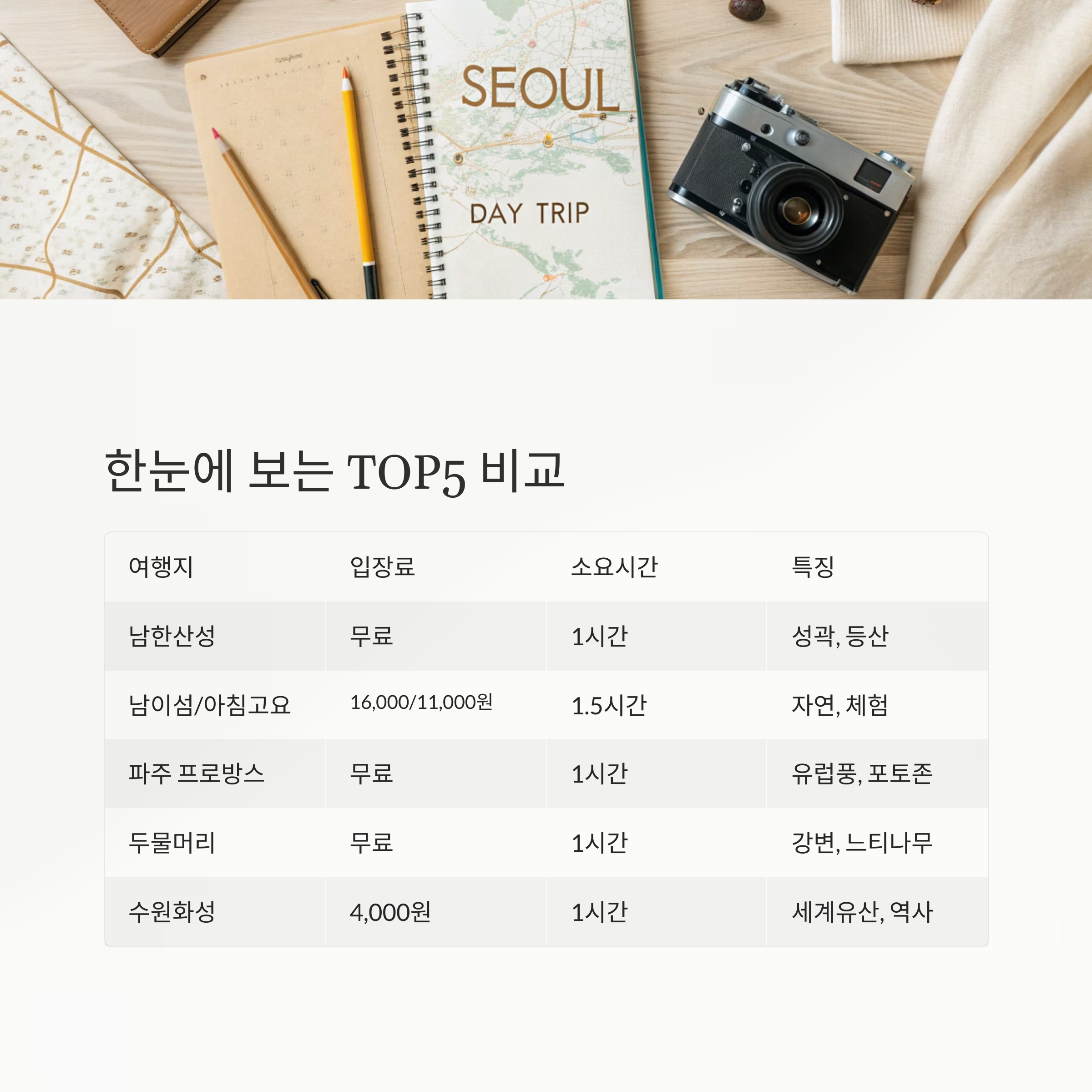 서울 근교 당일치기 여행지, 현장 검증으로 뽑은 진짜 추천 TOP5