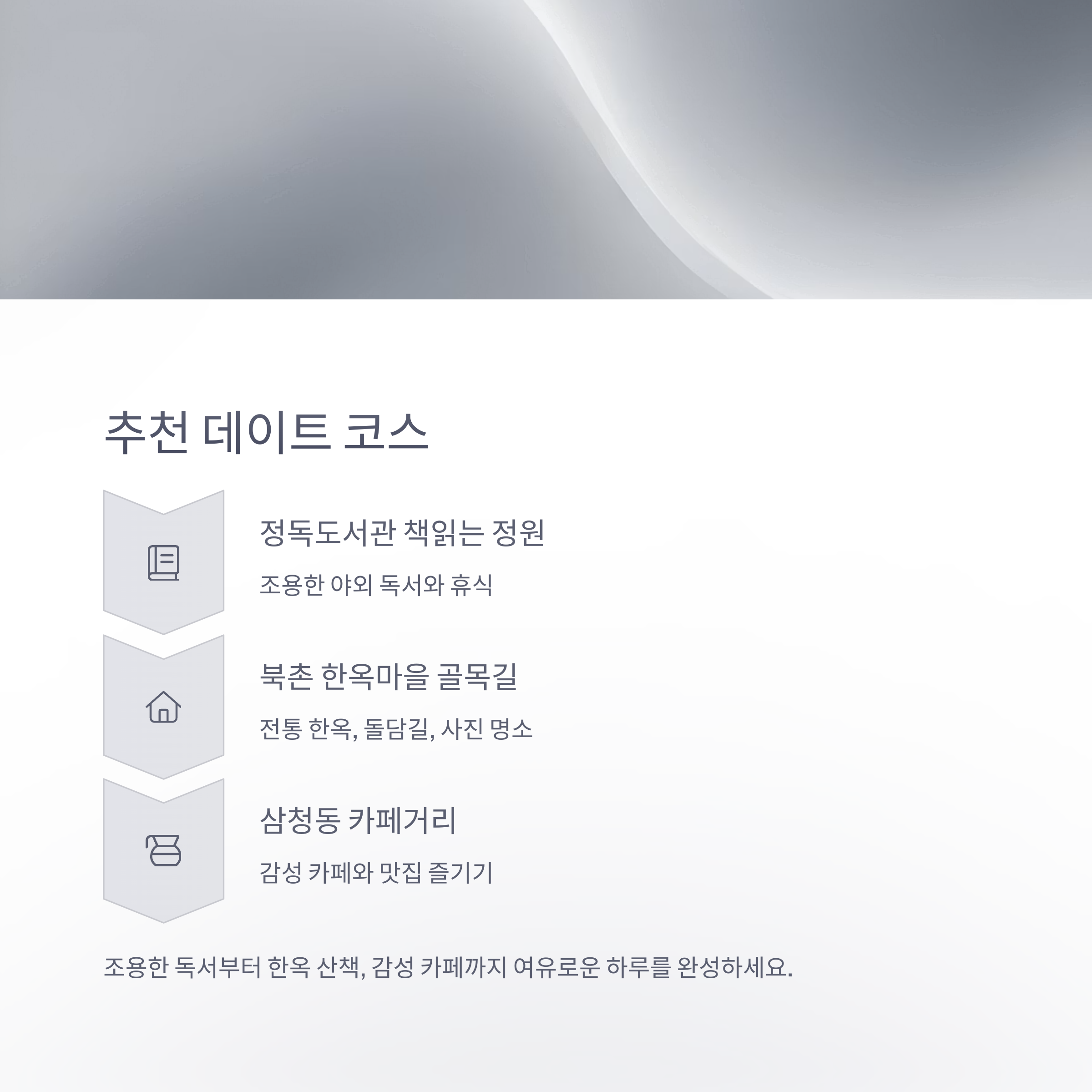 조용한 공간에서 독서 → 한옥 골목 산책 → 감성 카페 방문까지 자연스럽고 여유 있는 하루가 완성됩니다.