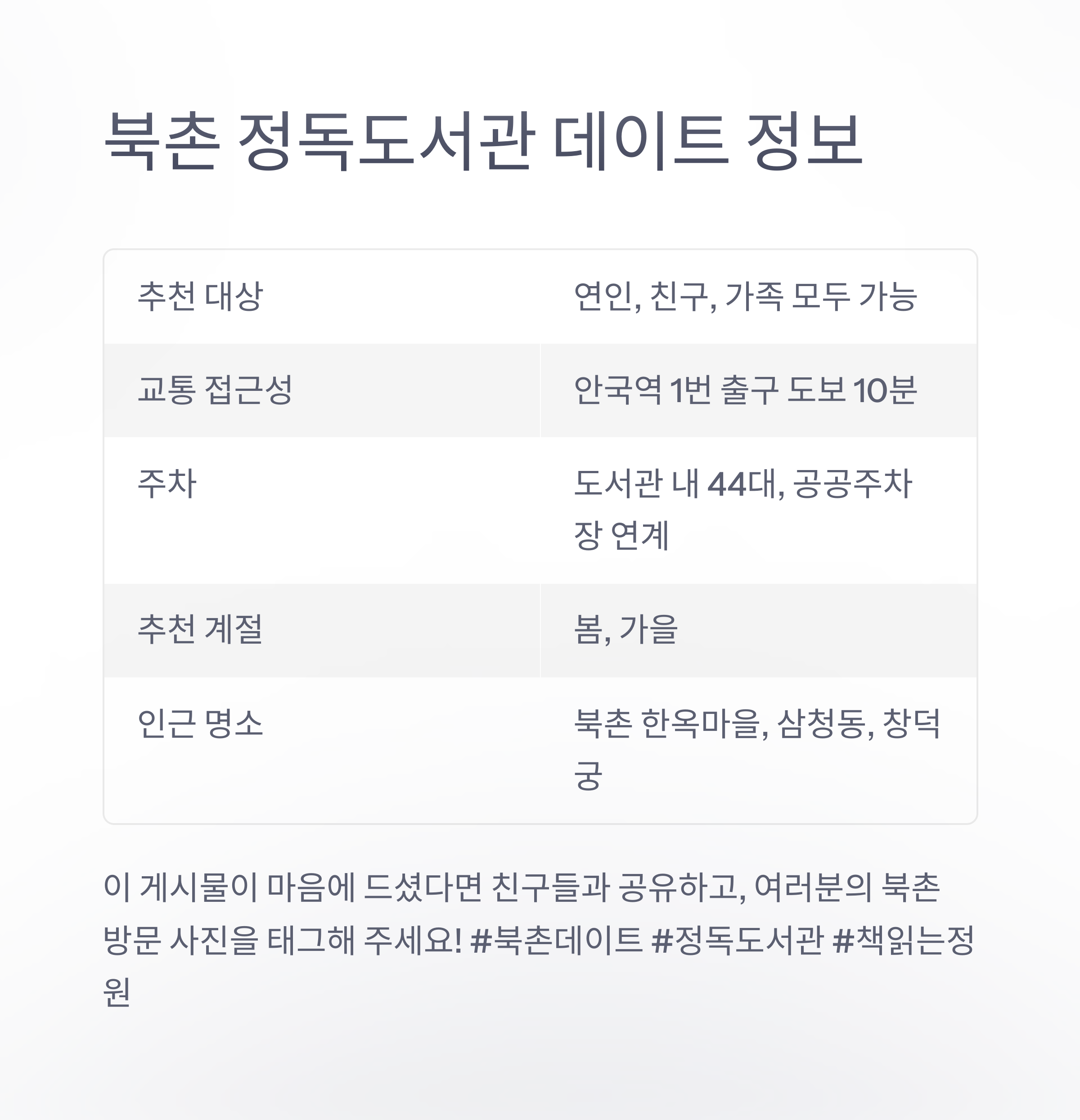 서울 도심 속 여유, 북촌 정독도서관 힐링 데이트 코스