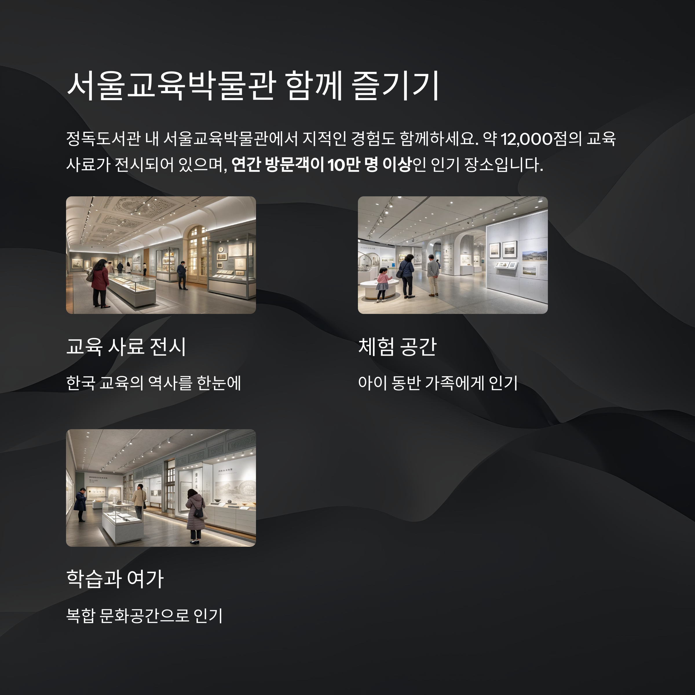 정독도서관 안에는 부설 기관인 서울교육박물관이 함께 운영되고 있어, 데이트 중 지적인 경험도 가능합니다.
