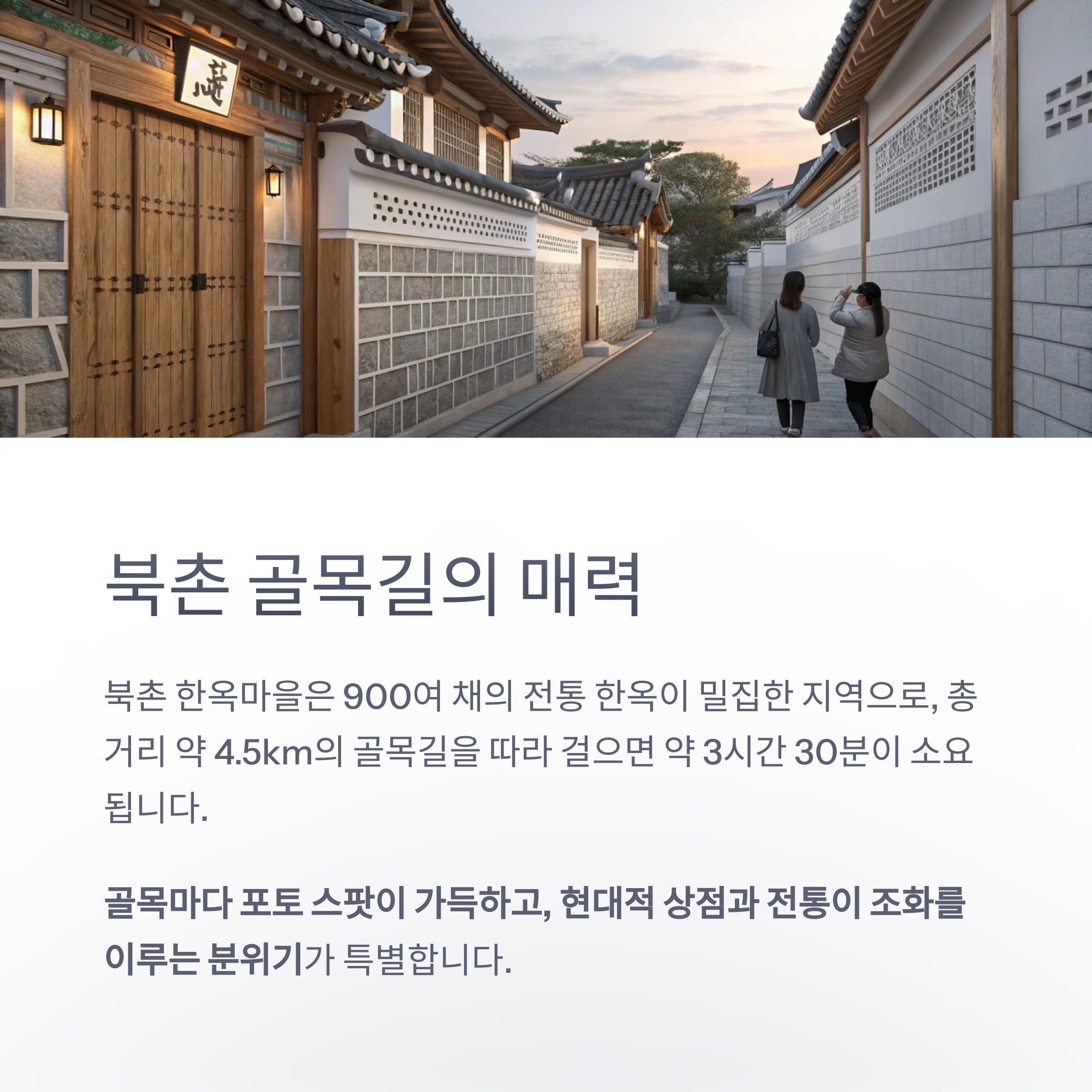 | 북촌 한옥마을 골목길 | 전통 한옥, 돌담길, 사진 명소 |