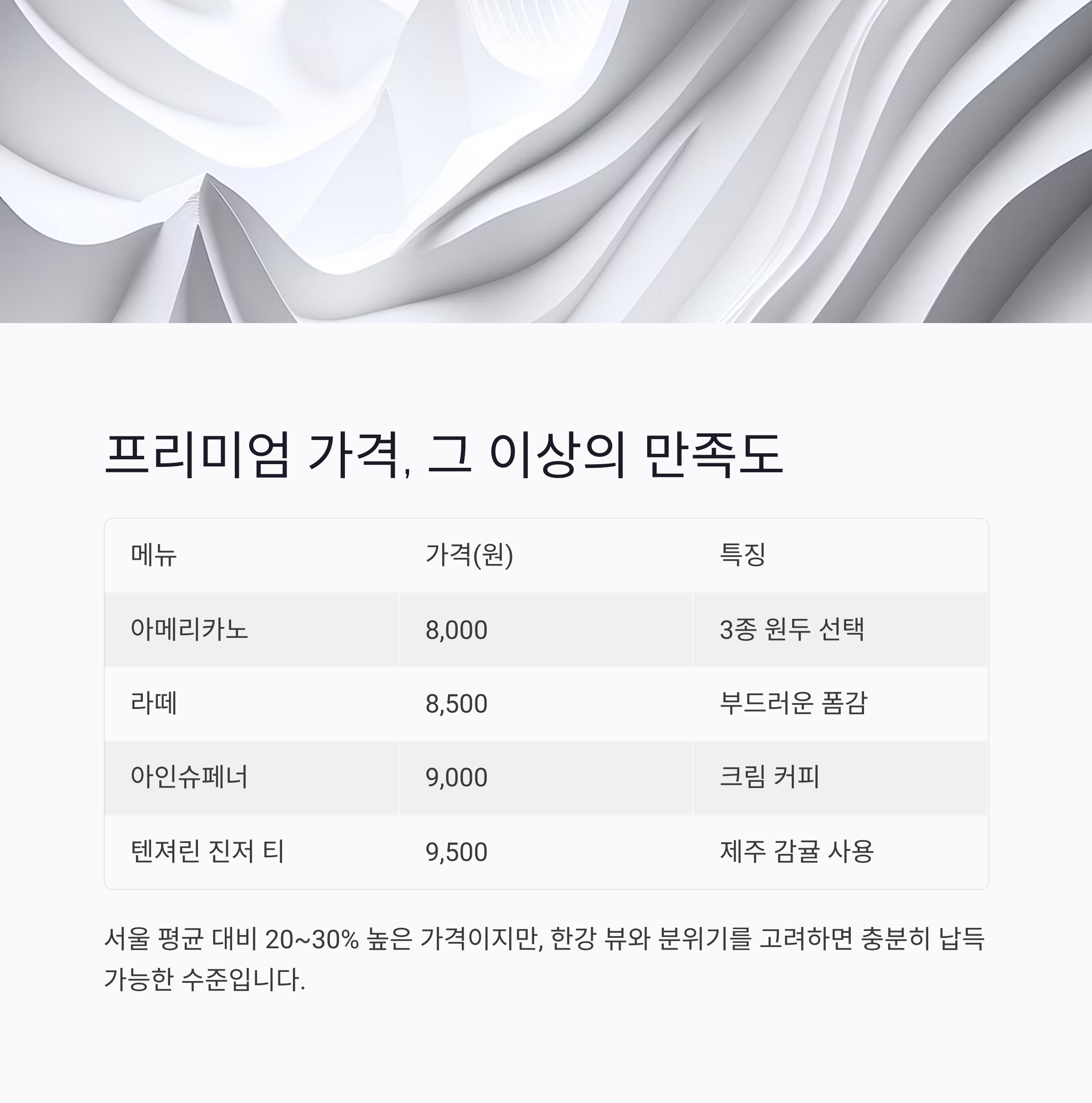 메뉴 가격은 프리미엄급, 만족도는 그 이상