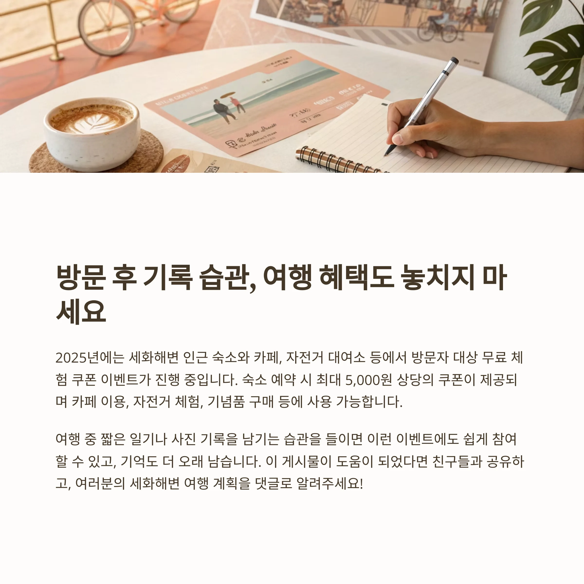 2025년에는 세화해변 인근 숙소와 카페, 자전거 대여소 등에서