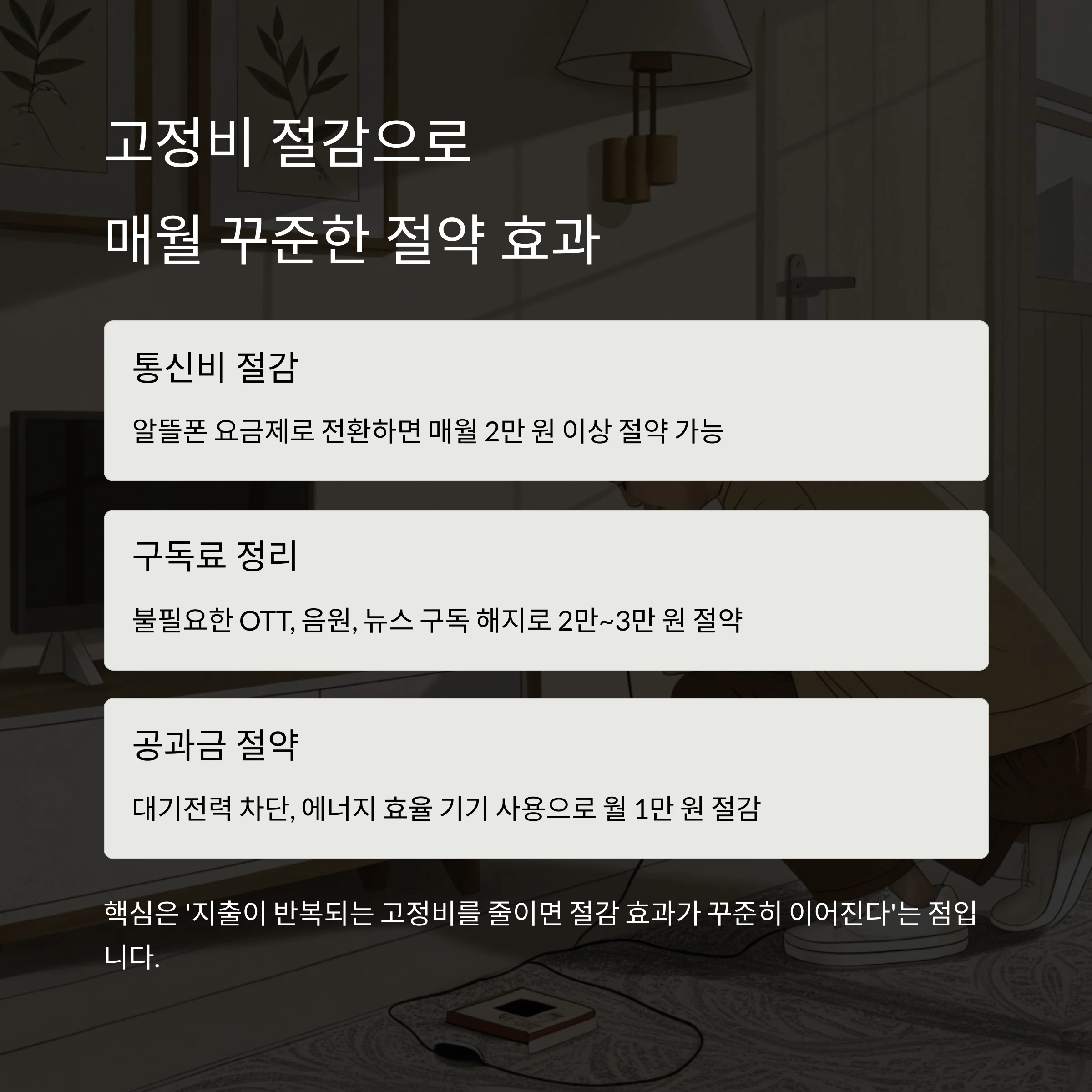핵심은 ‘지출이 반복되는 고정비를 줄이면 절감 효과가 꾸준히 이어진다’는 점입니다.