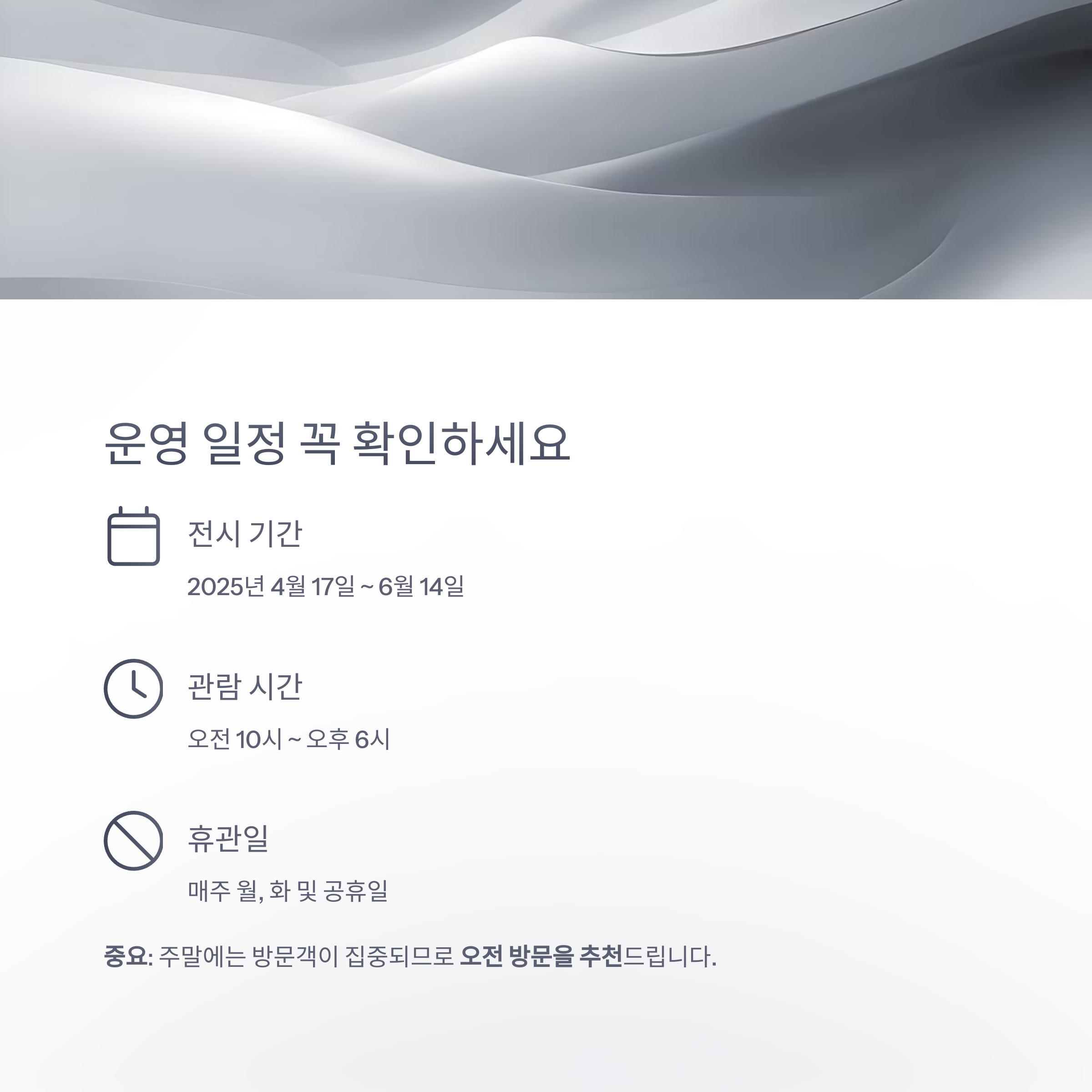 | 전시 기간 | 2025년 4월 17일 ~ 6월 14일 |