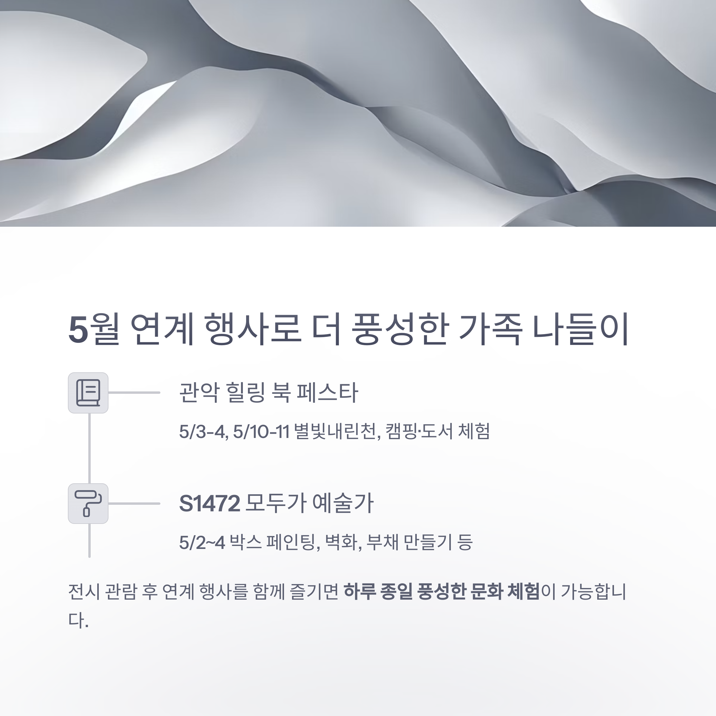 전시 관람 후 연계 행사를 함께 즐기면 하루 종일 풍성한 문화 체험이 가능합니다.