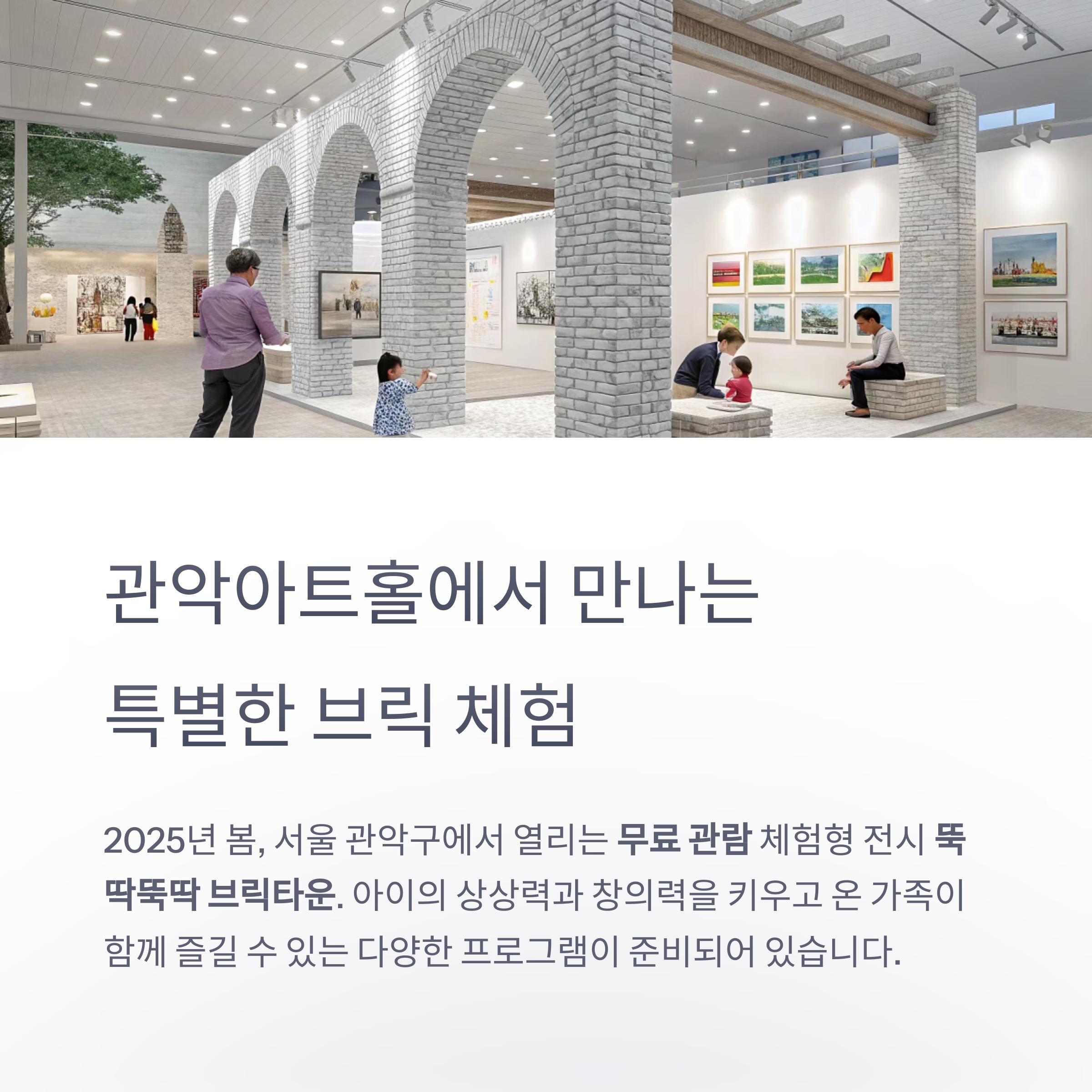2025년 봄, 서울 관악구에 위치한 관악아트홀에서 특별한 체험형 전시 **‘뚝딱뚝딱 브릭타운’**이 열리고 있습니다.