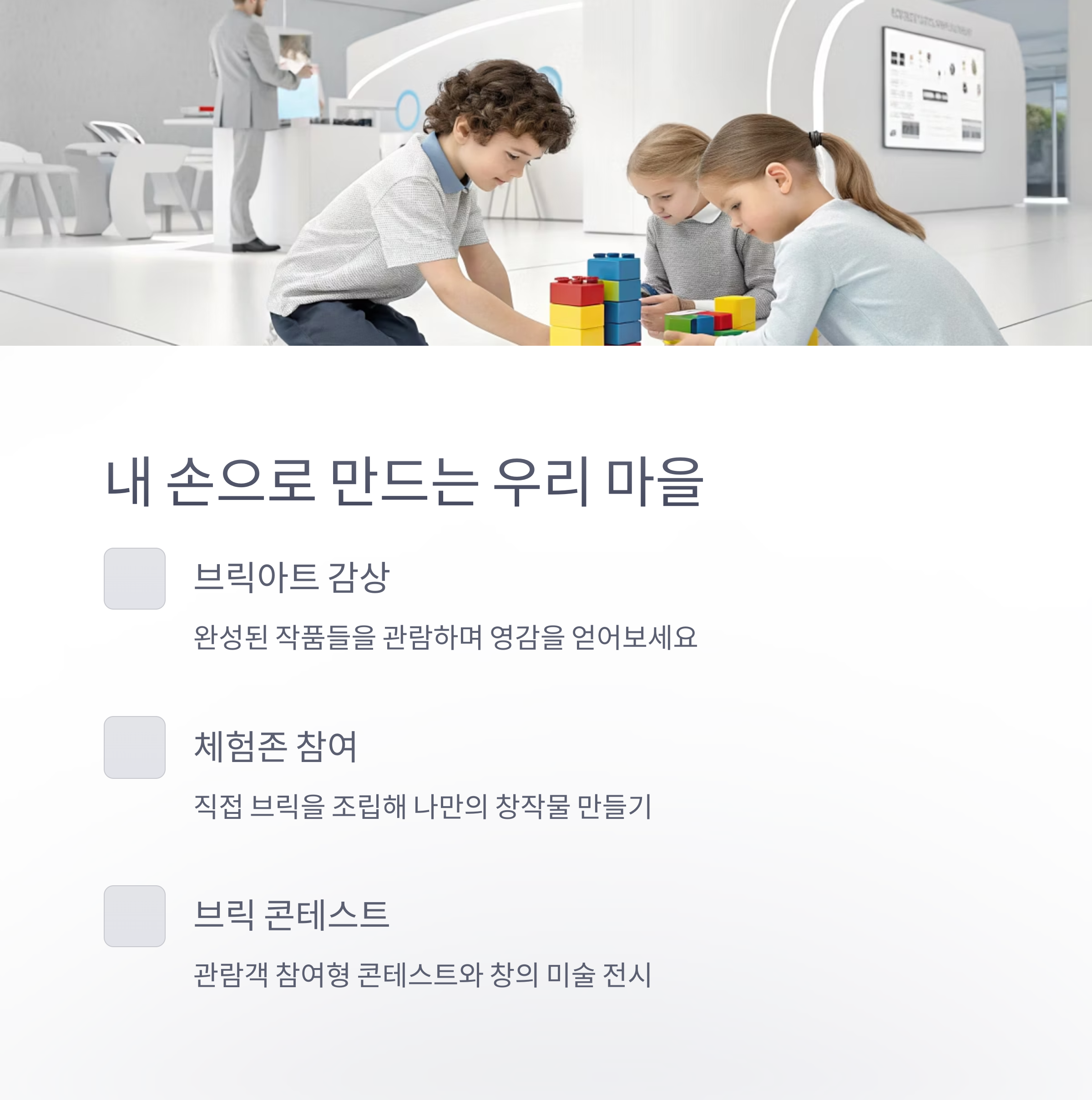 브릭으로 만드는 나만의 마을, 전시 콘텐츠 핵심 소개