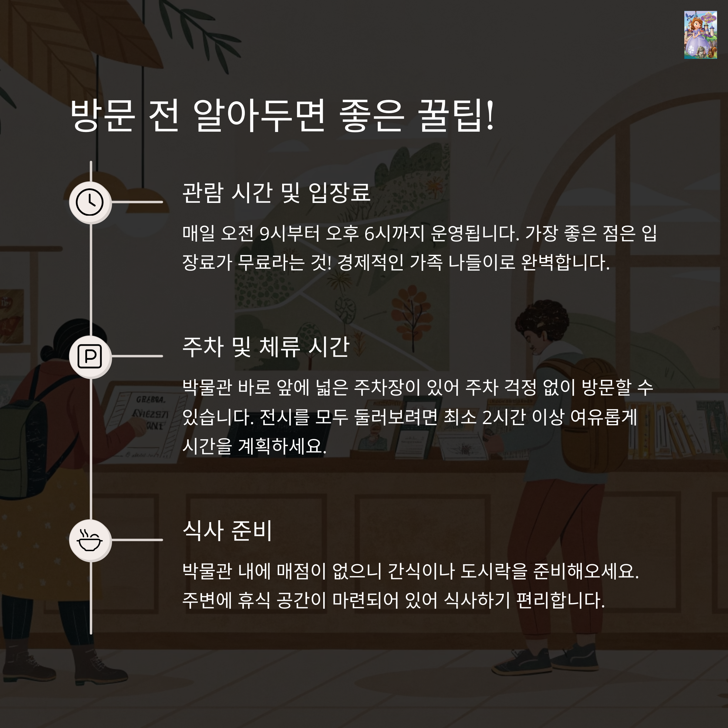 방문 전, 운영 시간과 특별 전시 계획을 사전 확인하는 것이 좋습니다.