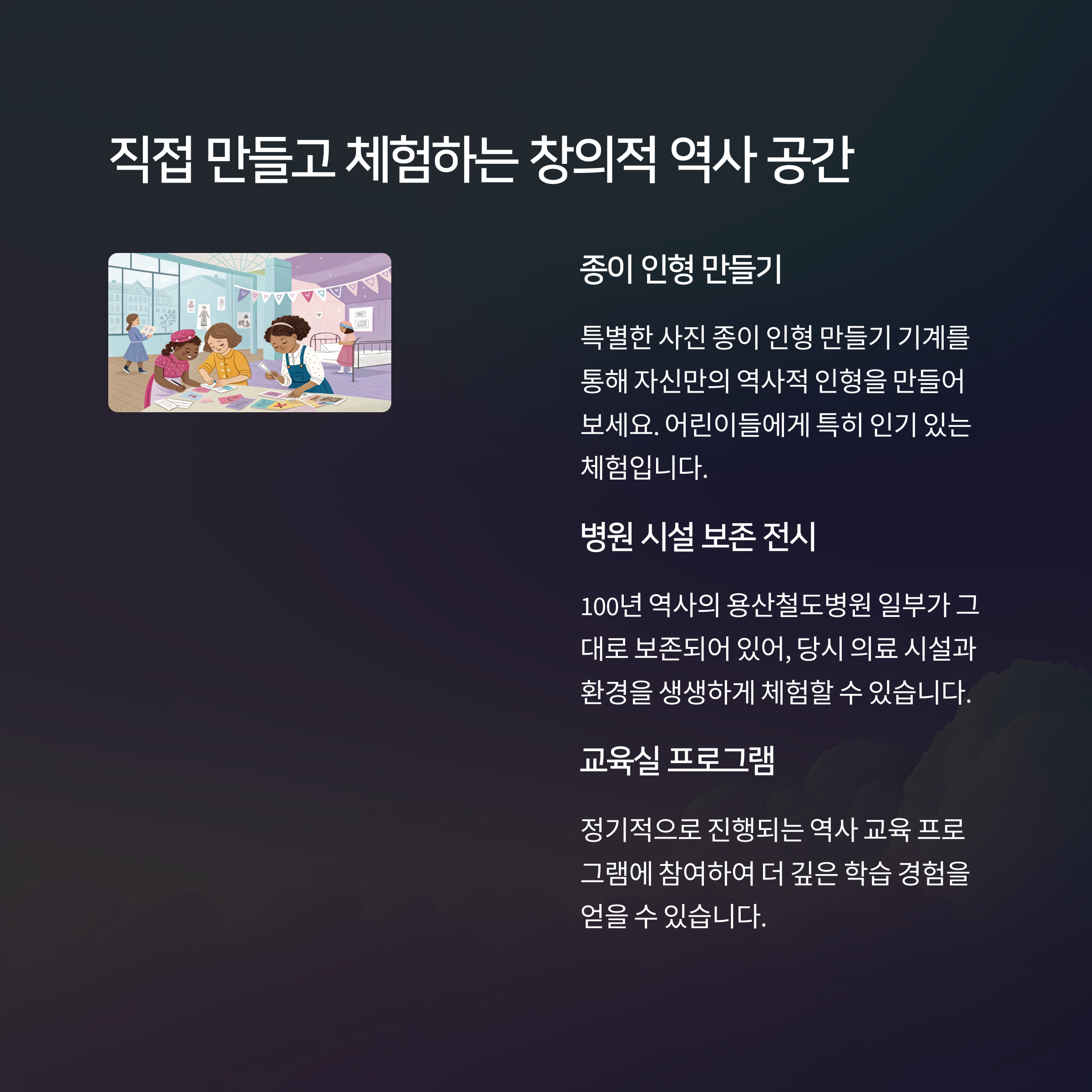 용산역사박물관은 용산 철도병원의 역사와 지역사회의 변화상을 통해 과거와 현재를 연결하는 놀라운 장소입니다.