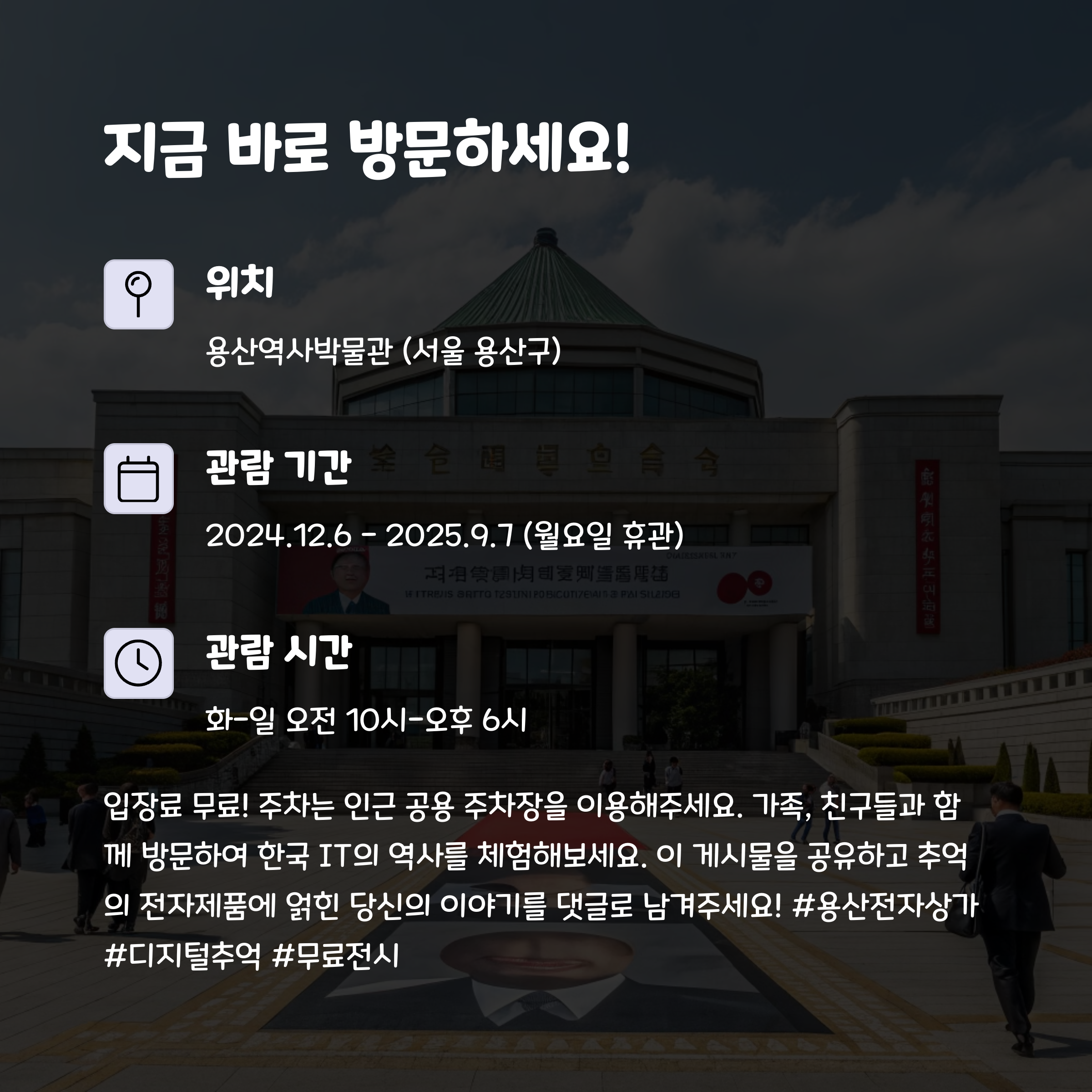 대한민국 전자문화를 선도한 용산전자상가의 역사와 특별 전시를 함께 탐구해 봅시다.