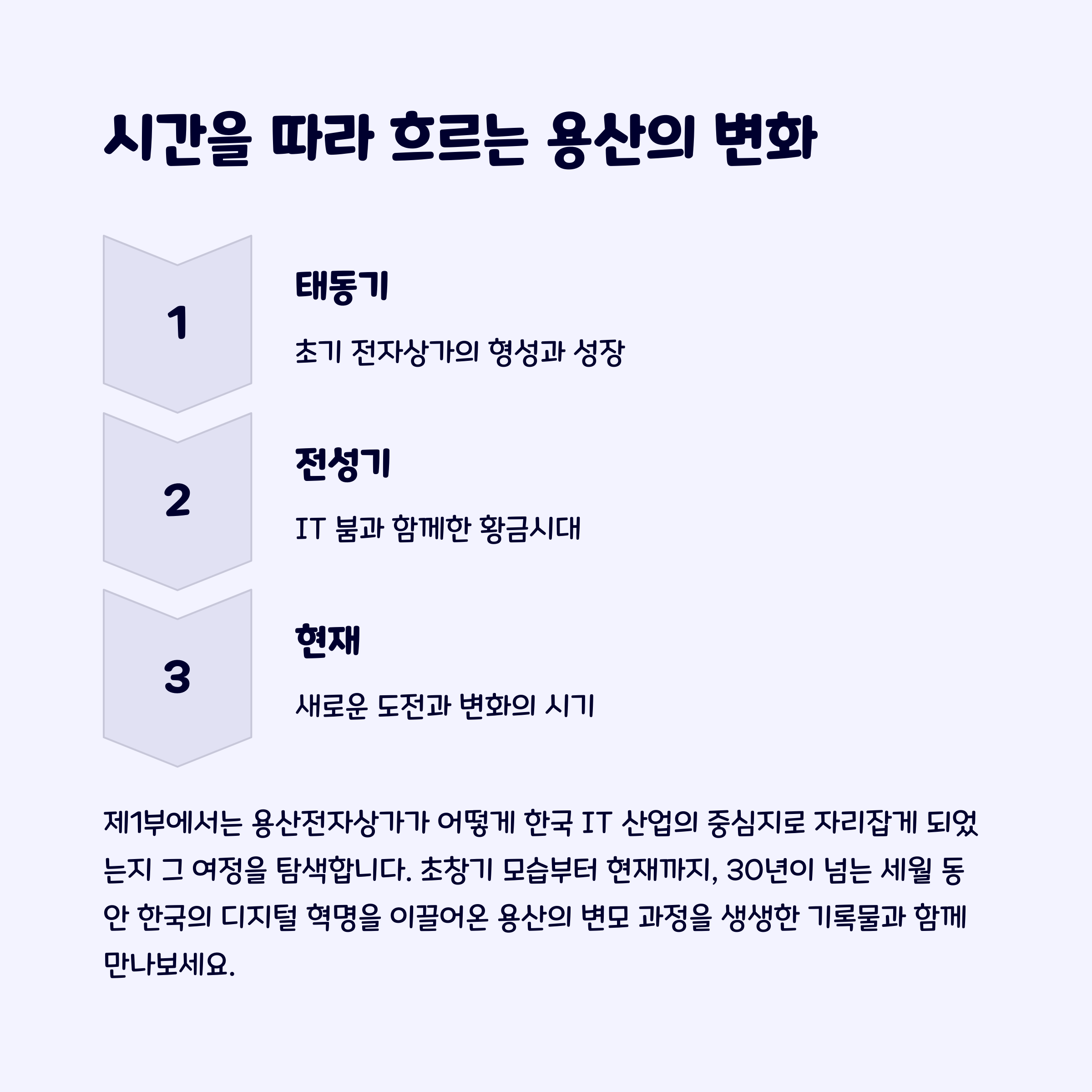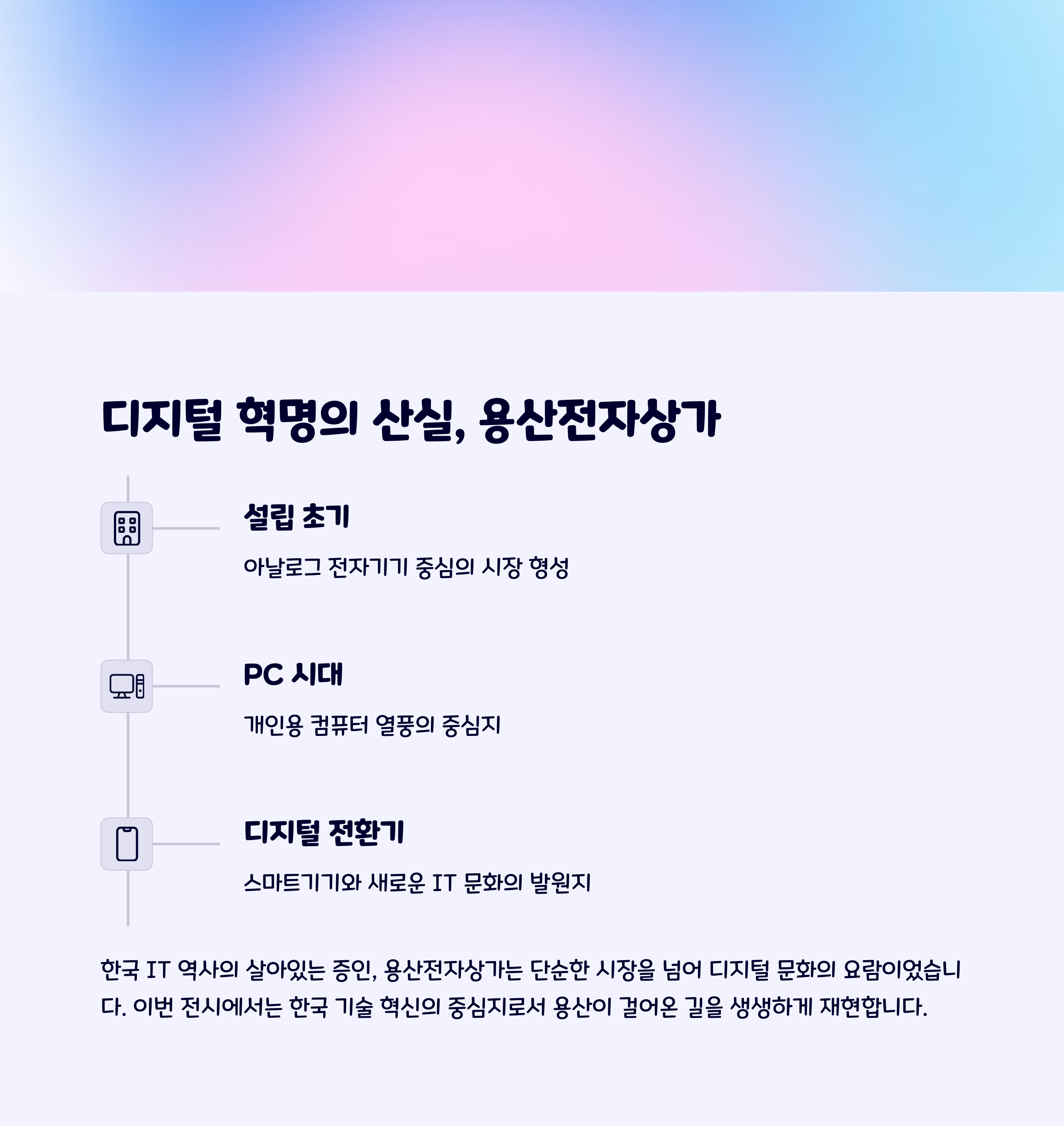용산전자상가의 변천사를 깊이 있게 탐구하며, 과거를 추억할 수 있습니다.