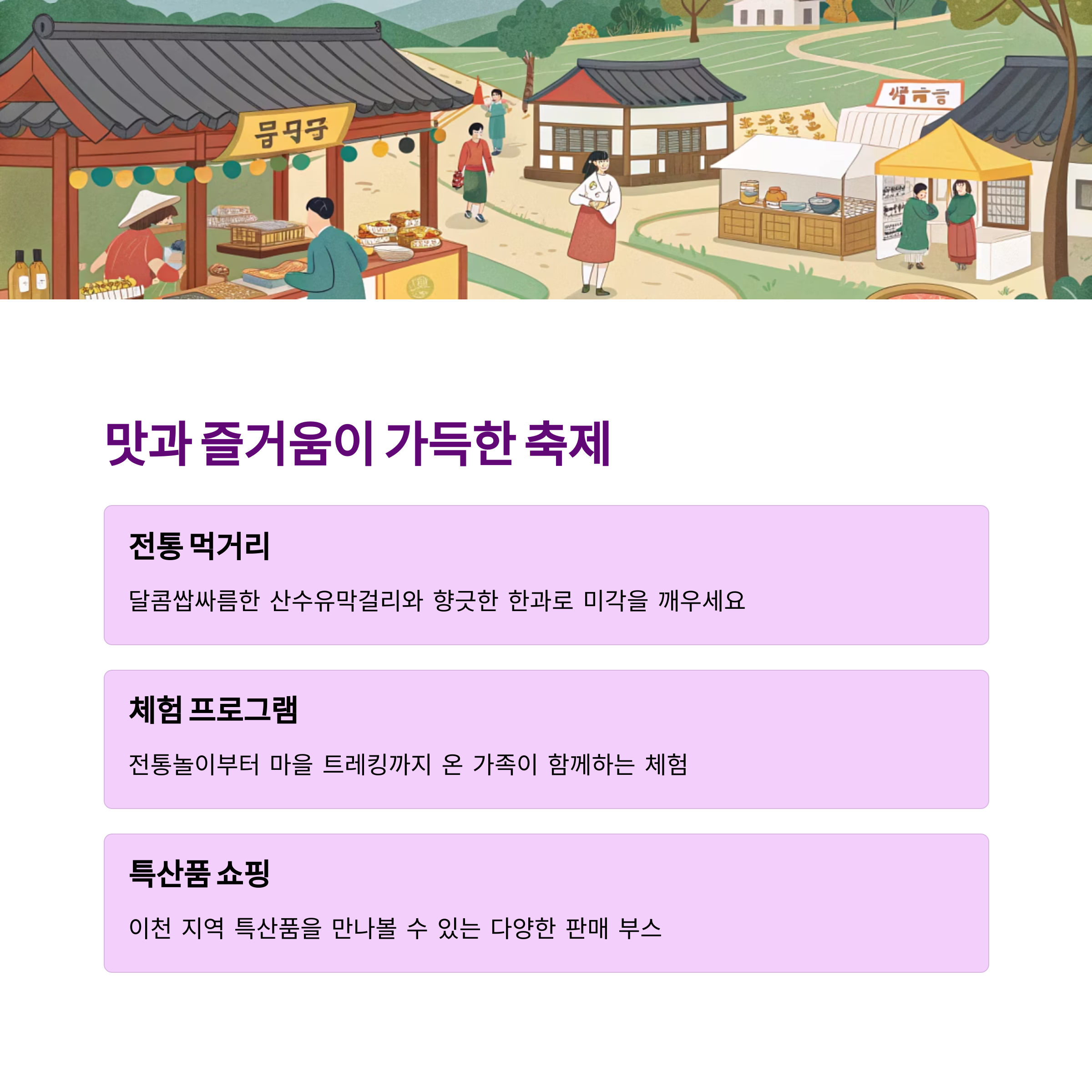 2025년 축제는 이천의 자연과 전통 문화를 경험하며 마음까지 따뜻해질 특별한 경험을 약속합니다.
