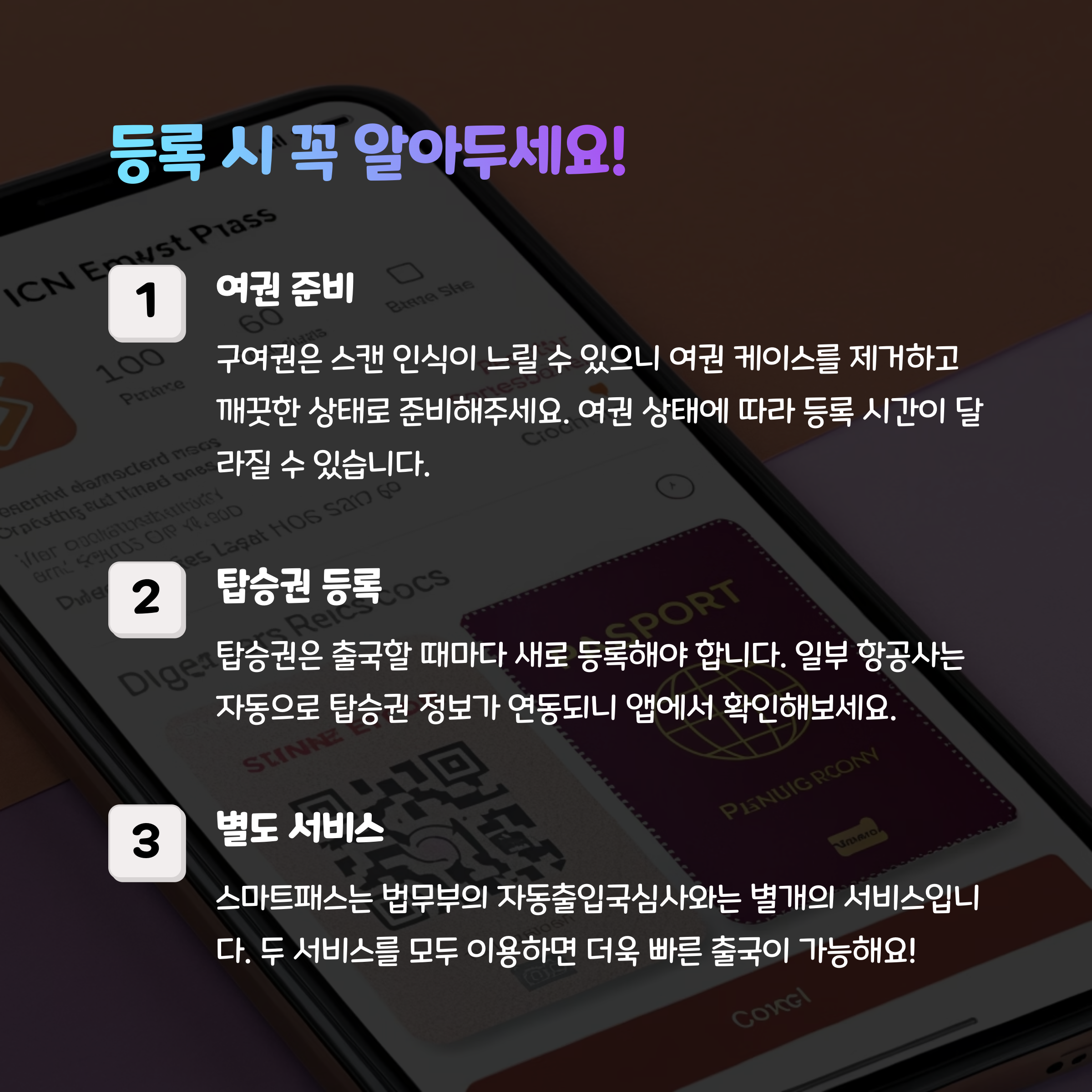 스마트패스 등록 후에도 여권 소지가 필요하므로, 항상 안전한 장소에 보관하세요.