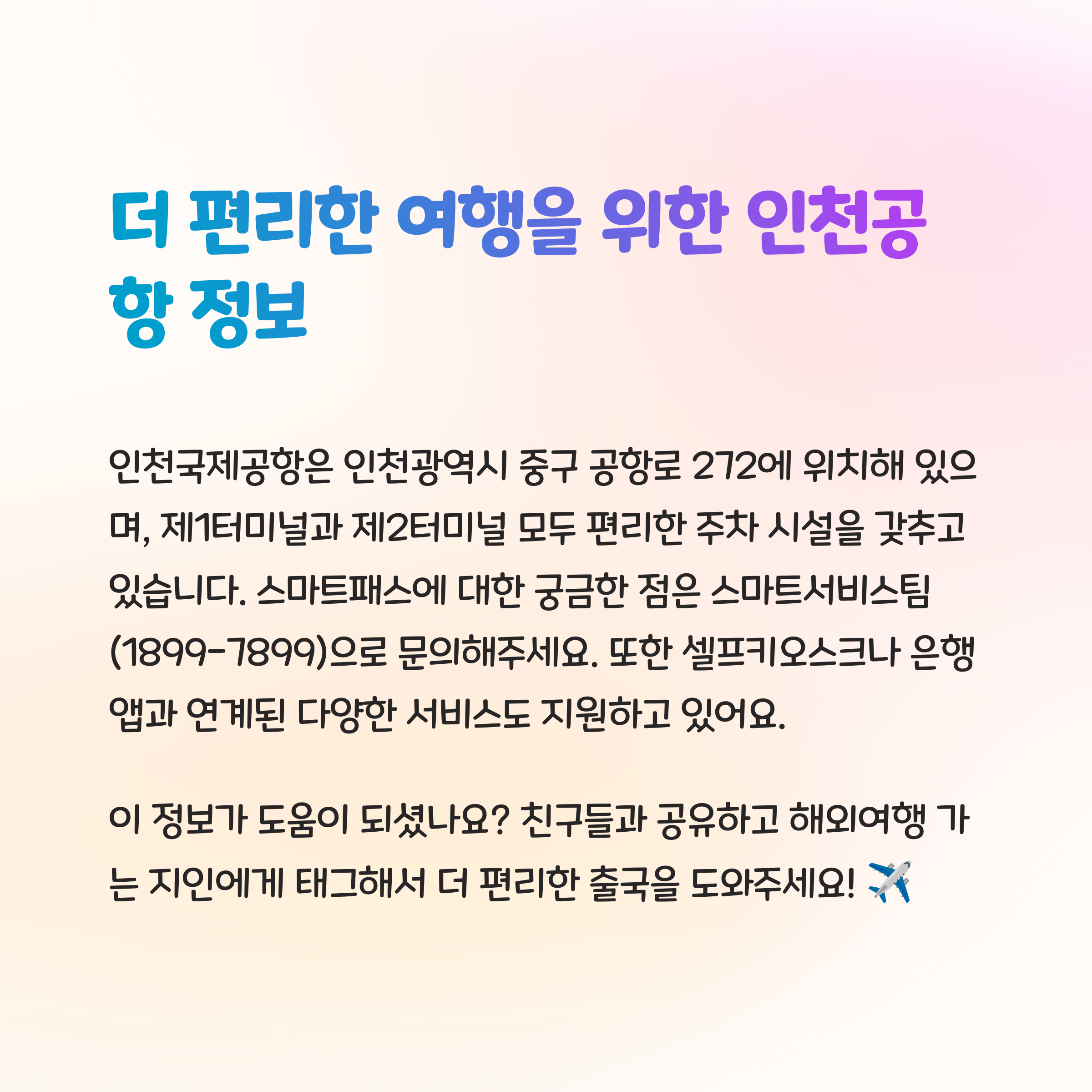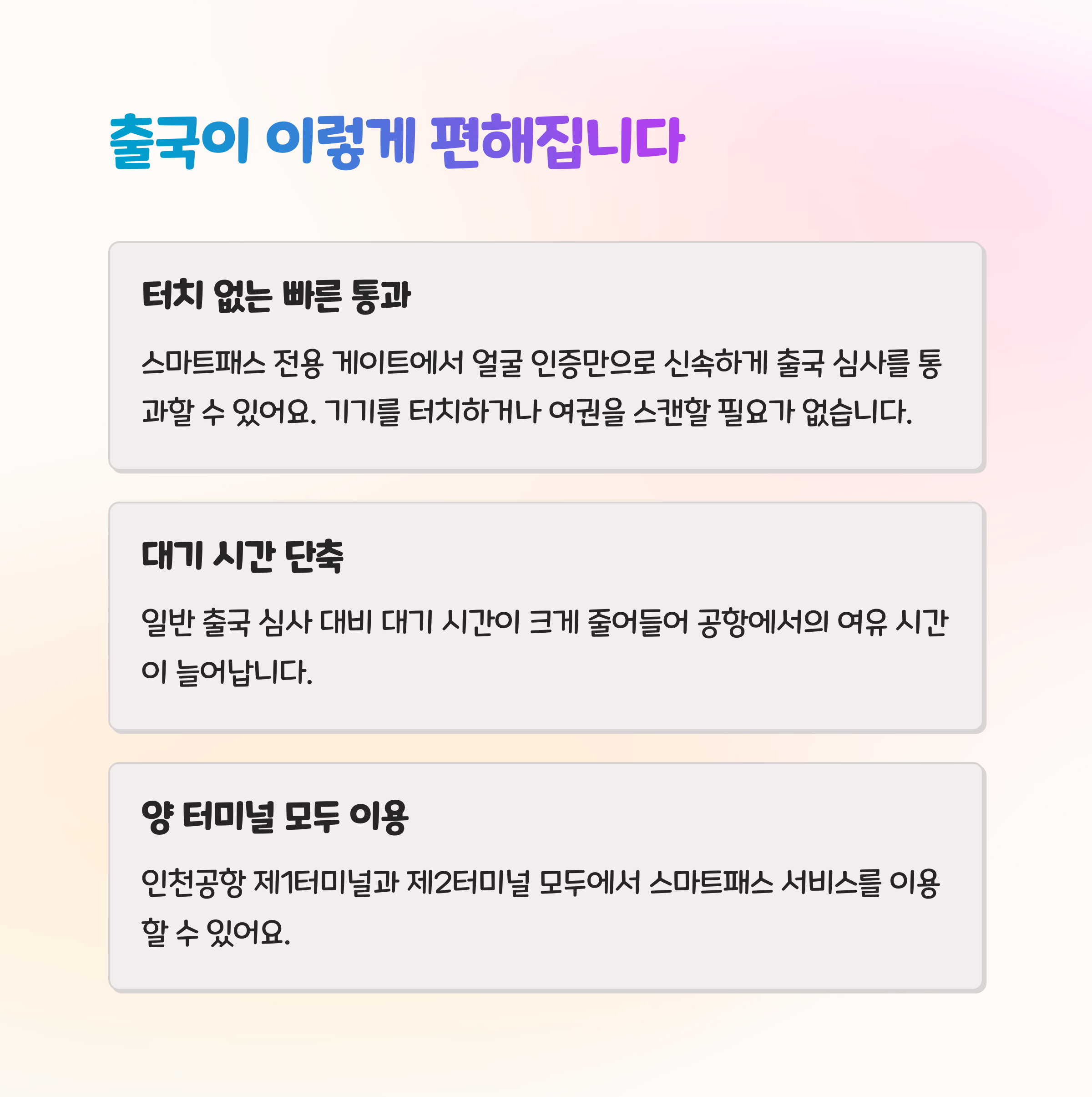 여행을 준비하면서 인천공항 스마트패스를 사용하면, 보다 간편한 출국 절차를 경험할 수 있습니다.