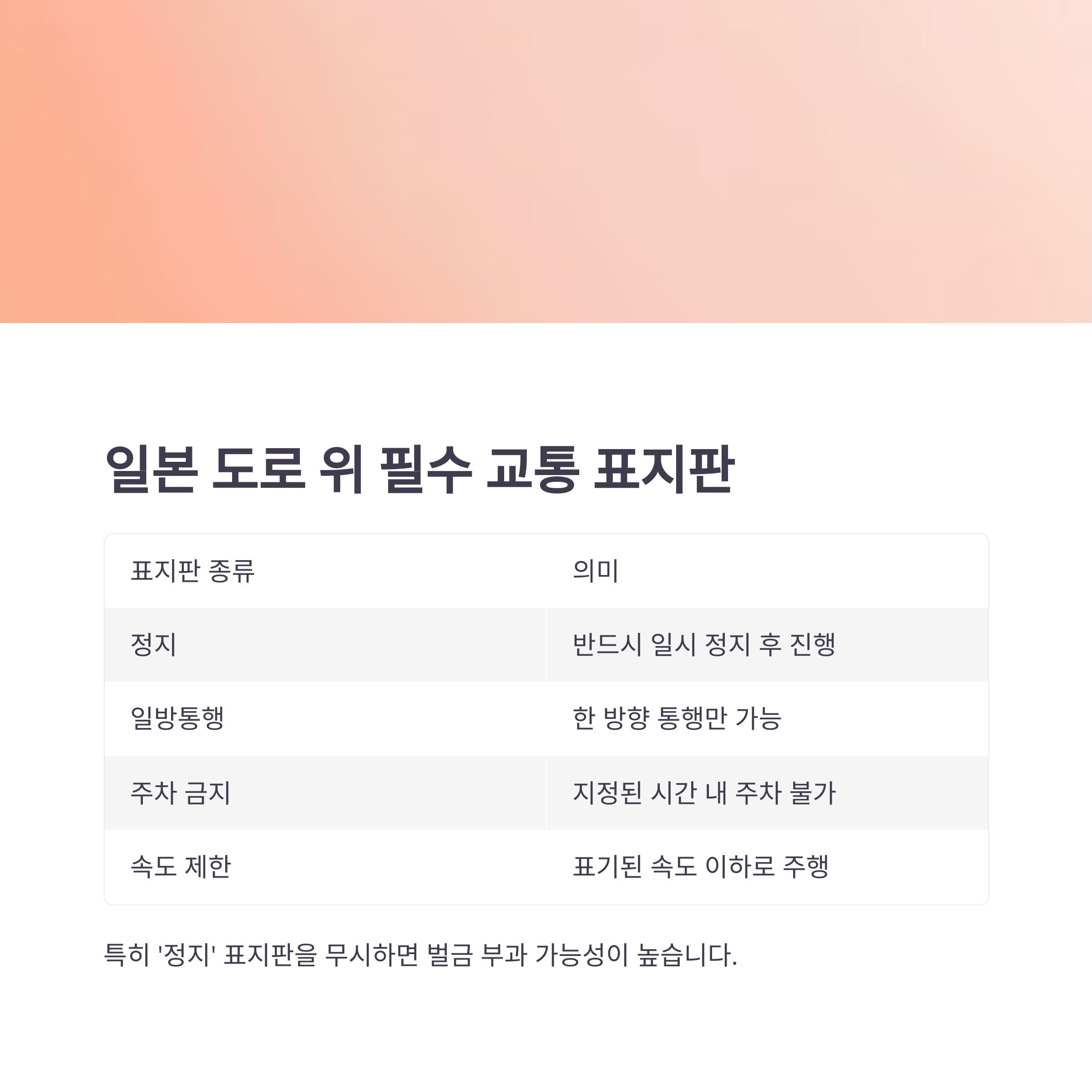 일본 도로 위 필수 교통 표지판 완벽 가이드