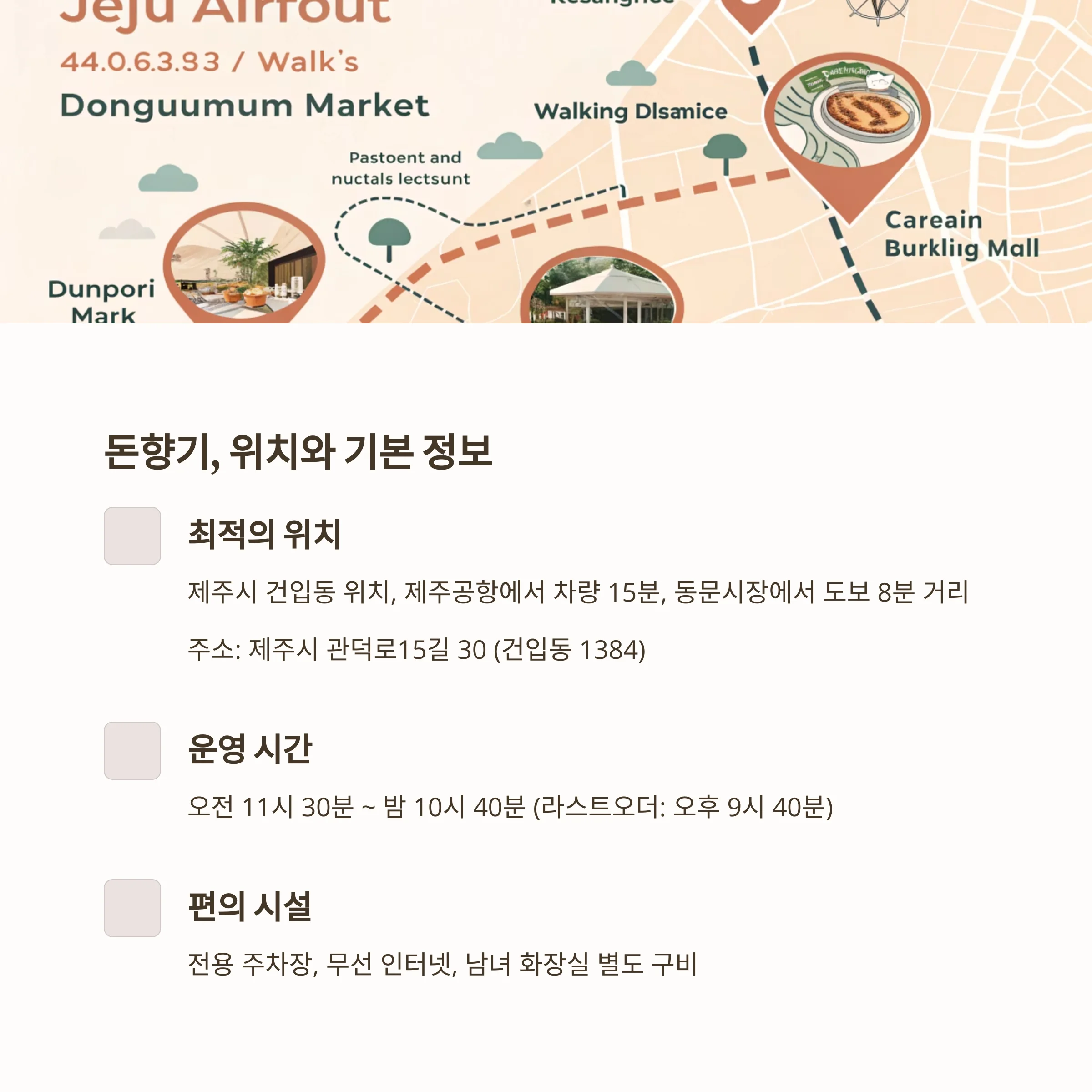 | 위치 확인 | 공항과 동문시장 사이, 차량 이동 15분 |