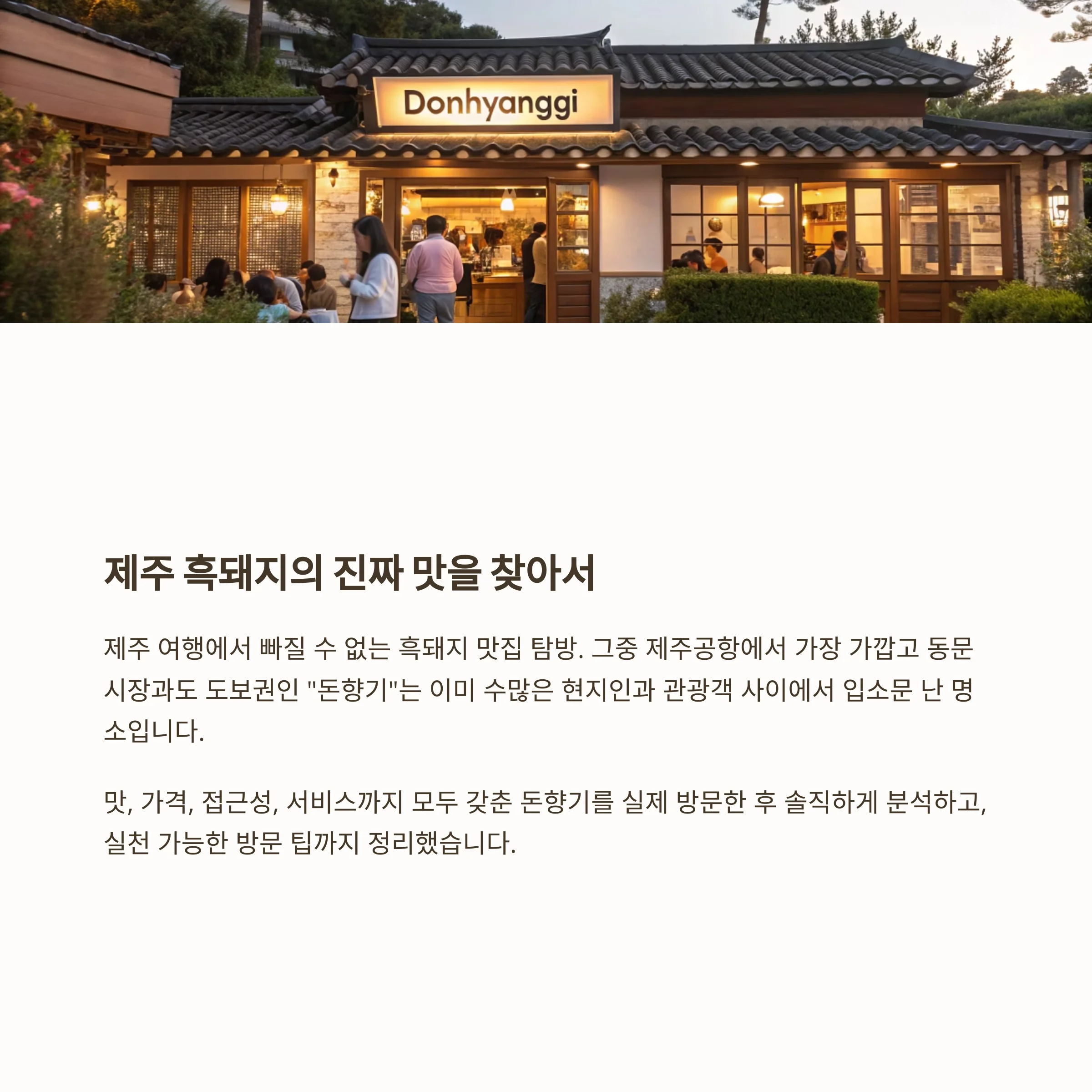 제주 여행에서 빠질 수 없는 흑돼지 맛집 탐방. 그중 제주공항에서 가장 가깝고 동문시장과도 도보권인 "돈향기"는 이미 수많은 현지인과 관광객 사이에서 입소문 난 명소입니다. 맛, 가격, 접근성, 서비스까지 모두 갖춘 돈향기를 실제 방문한 후 솔직하게 분석하고, 실천 가능한 방문 팁까지 정리했습니다.