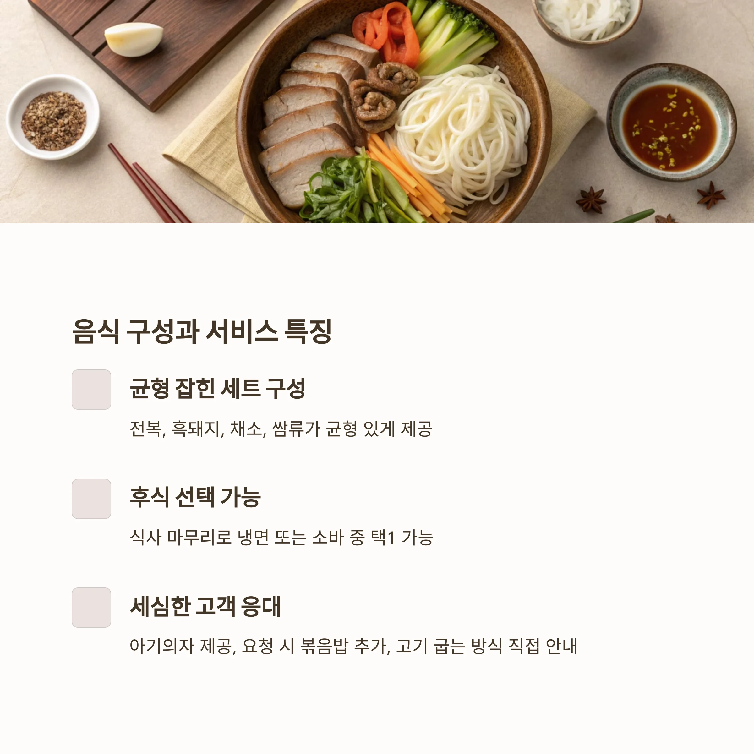 음식 구성과 서비스, 어떤 점이 인상적일까?